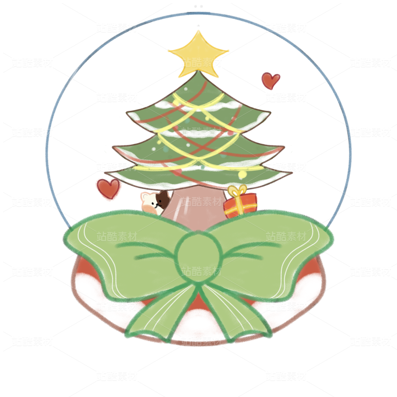 卡通手繪圣誕節(jié)禮物圣誕樹節(jié)日貼紙插畫元素