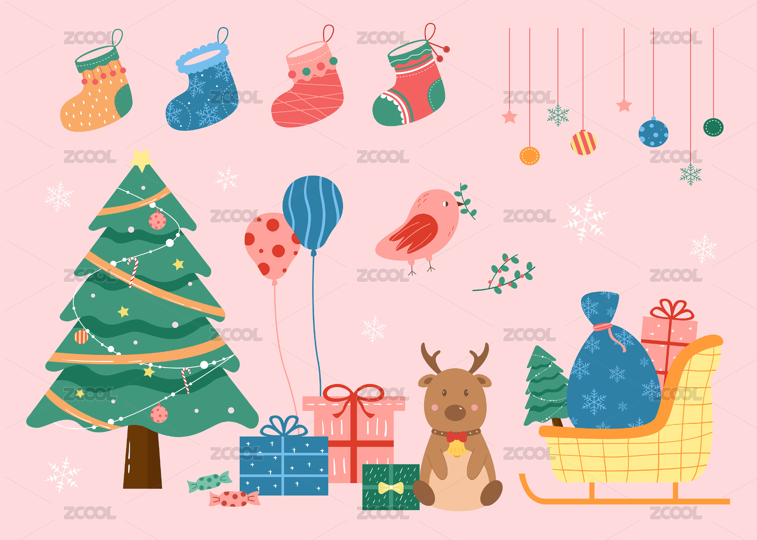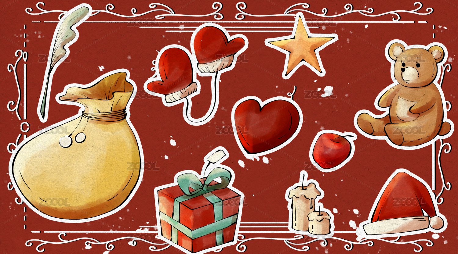 圣誕節(jié)元素貼紙插畫