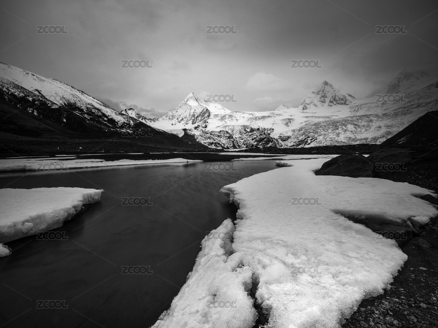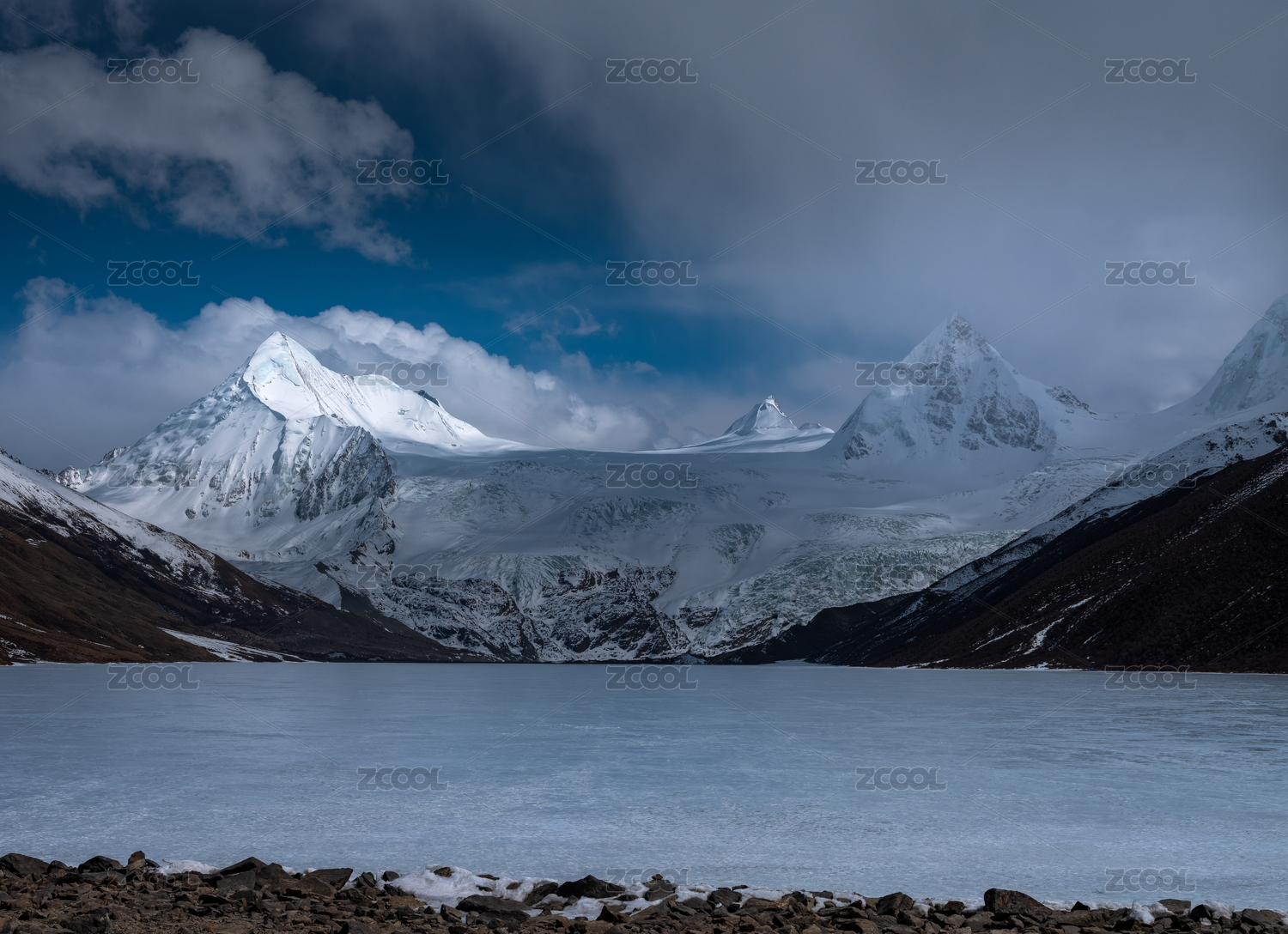 中國西藏那曲市薩普神山雪山與巖石