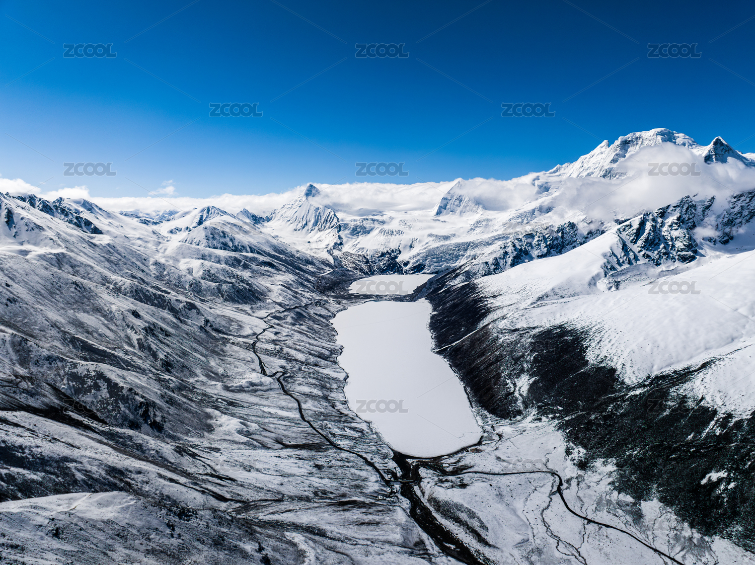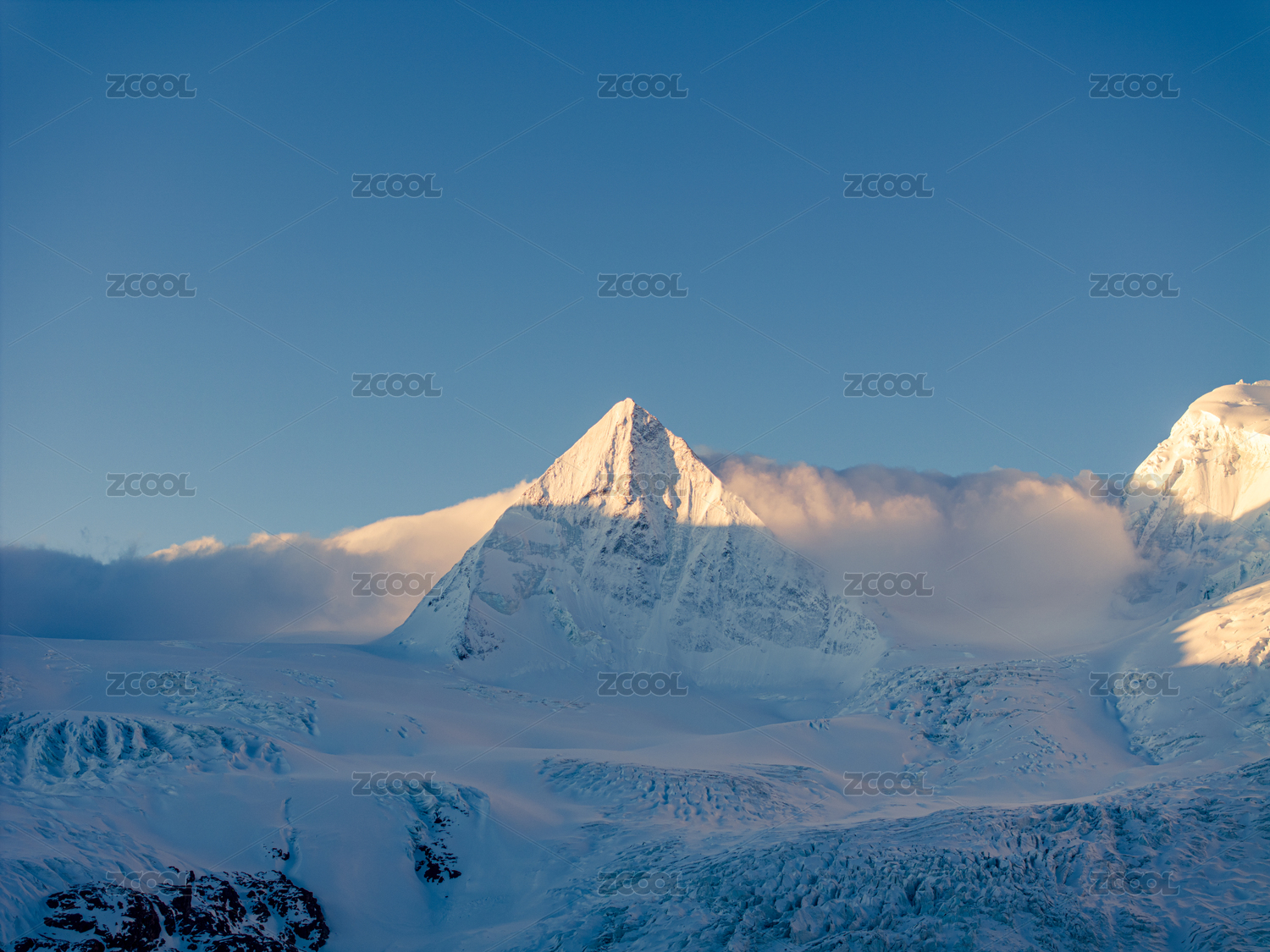 中國西藏那曲市薩普山峰雪山藍(lán)天白云