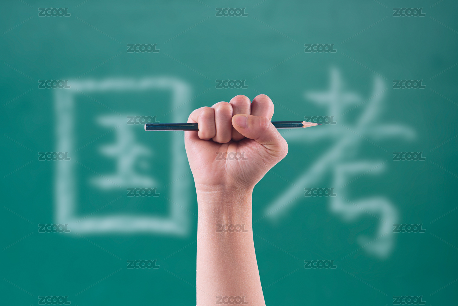 手握鉛筆背后的黑板寫著考公