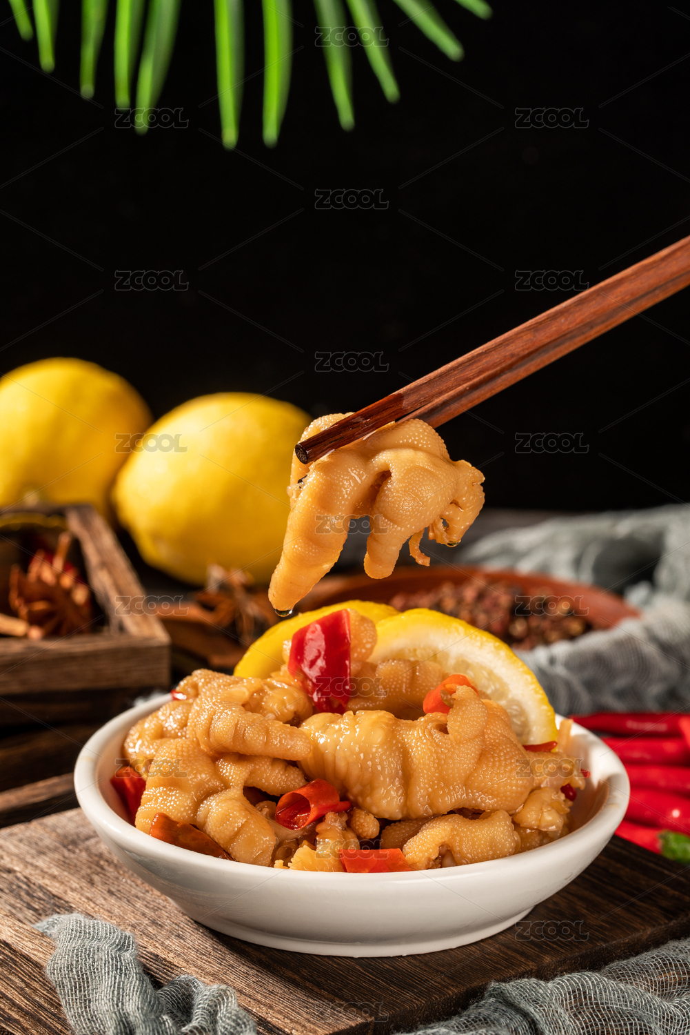 木板背景上滿(mǎn)滿(mǎn)一盤(pán)去骨鳳爪