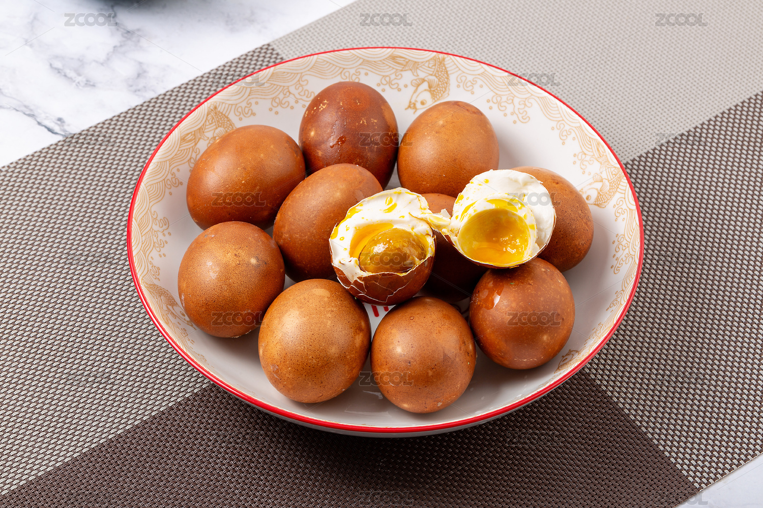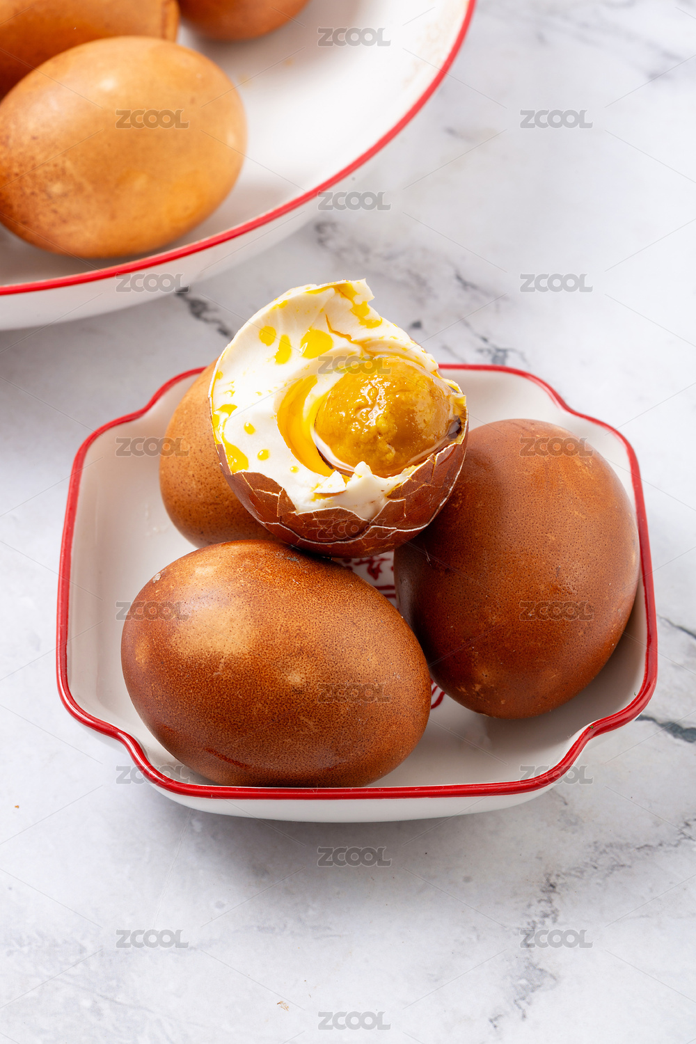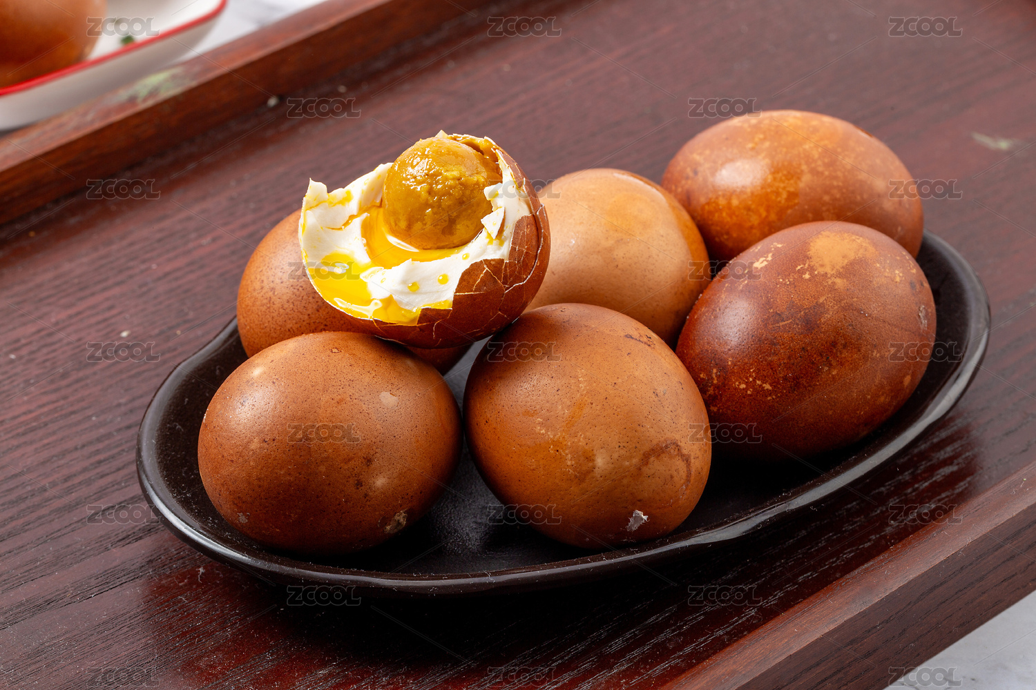 裝在盤子里的天津薊縣麻醬咸雞蛋
