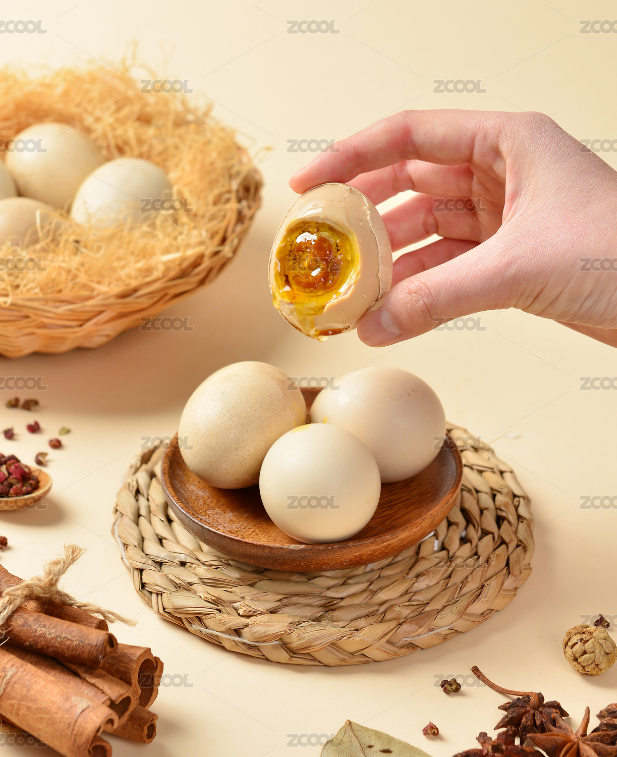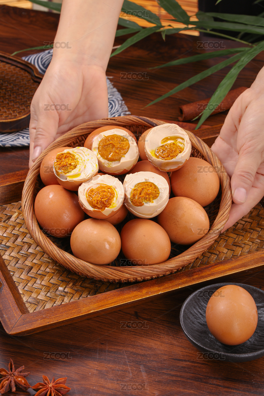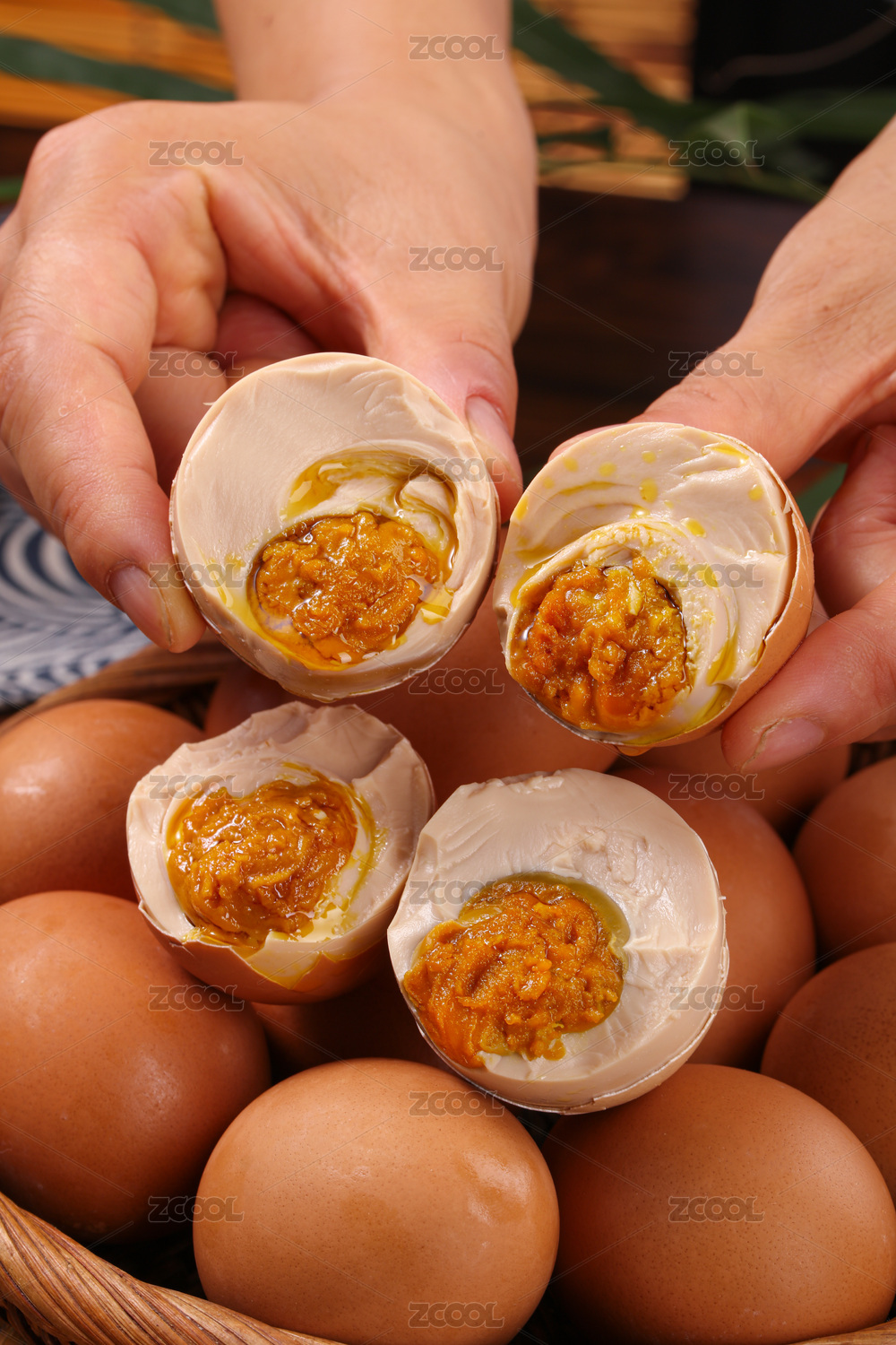 裝在盤子里的天津薊縣麻醬咸雞蛋