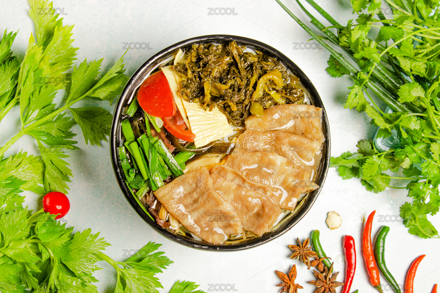 白碗里的酸菜肥牛米線米粉