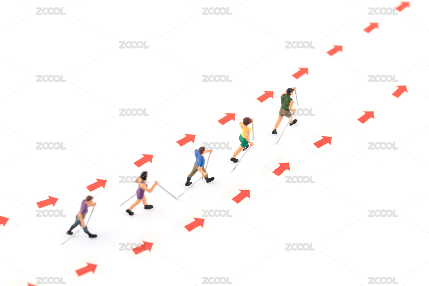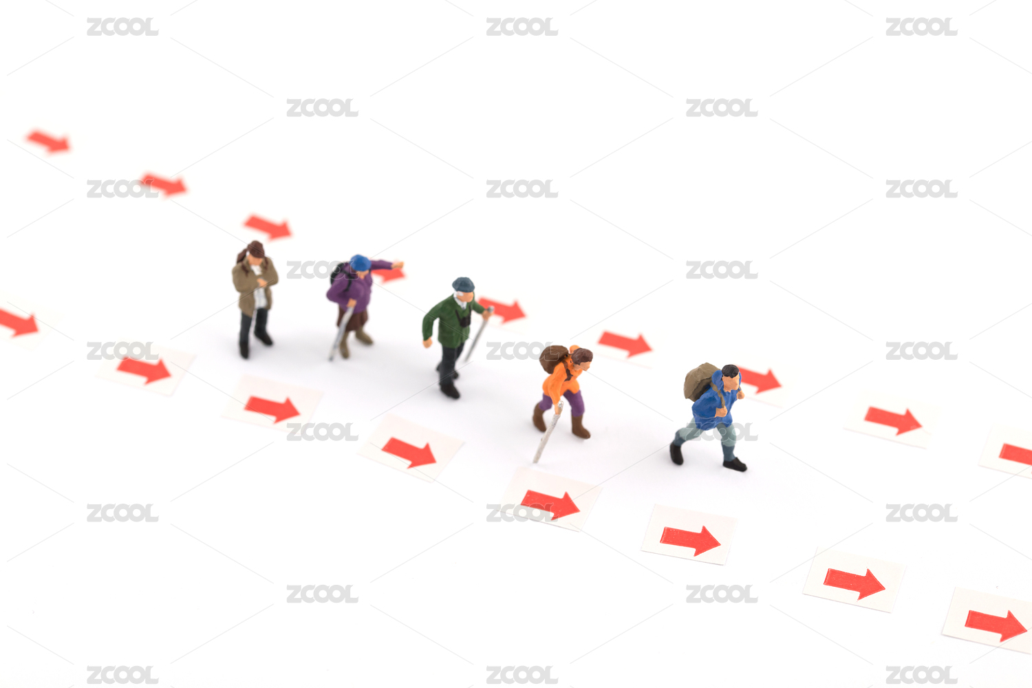 微縮創(chuàng)意箭頭向前滑雪前進