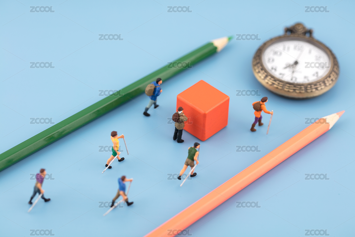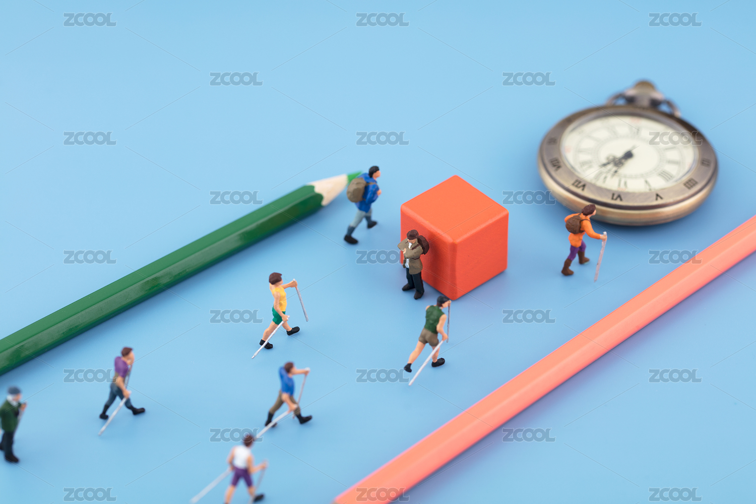 微縮場景鉛筆指引前進方向