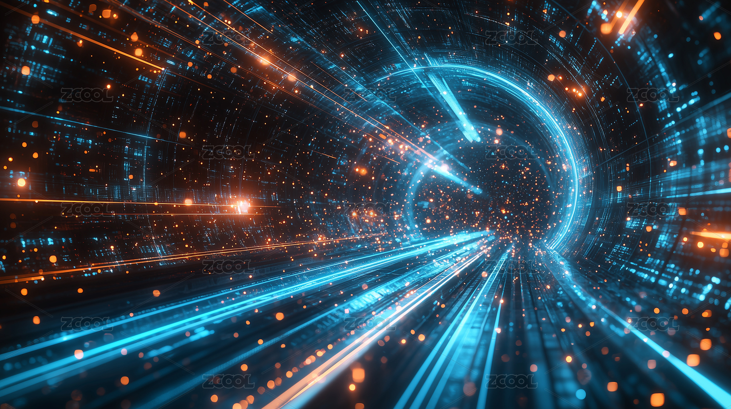 3D線條穿梭科技感未來空間交織穿梭