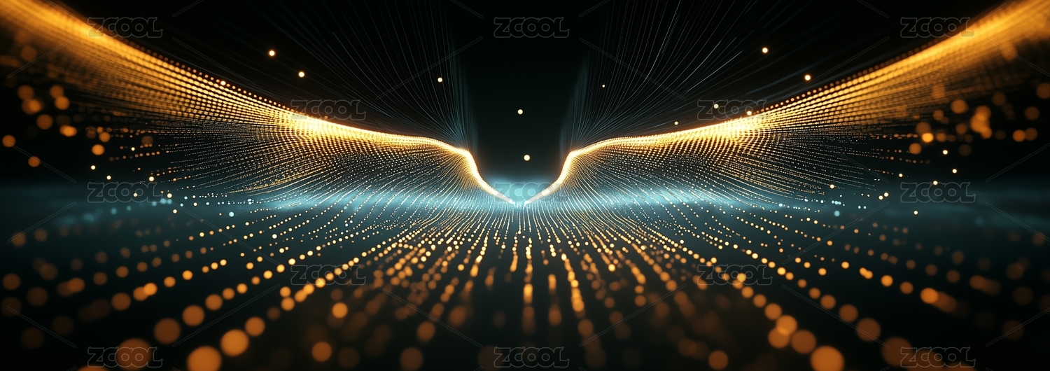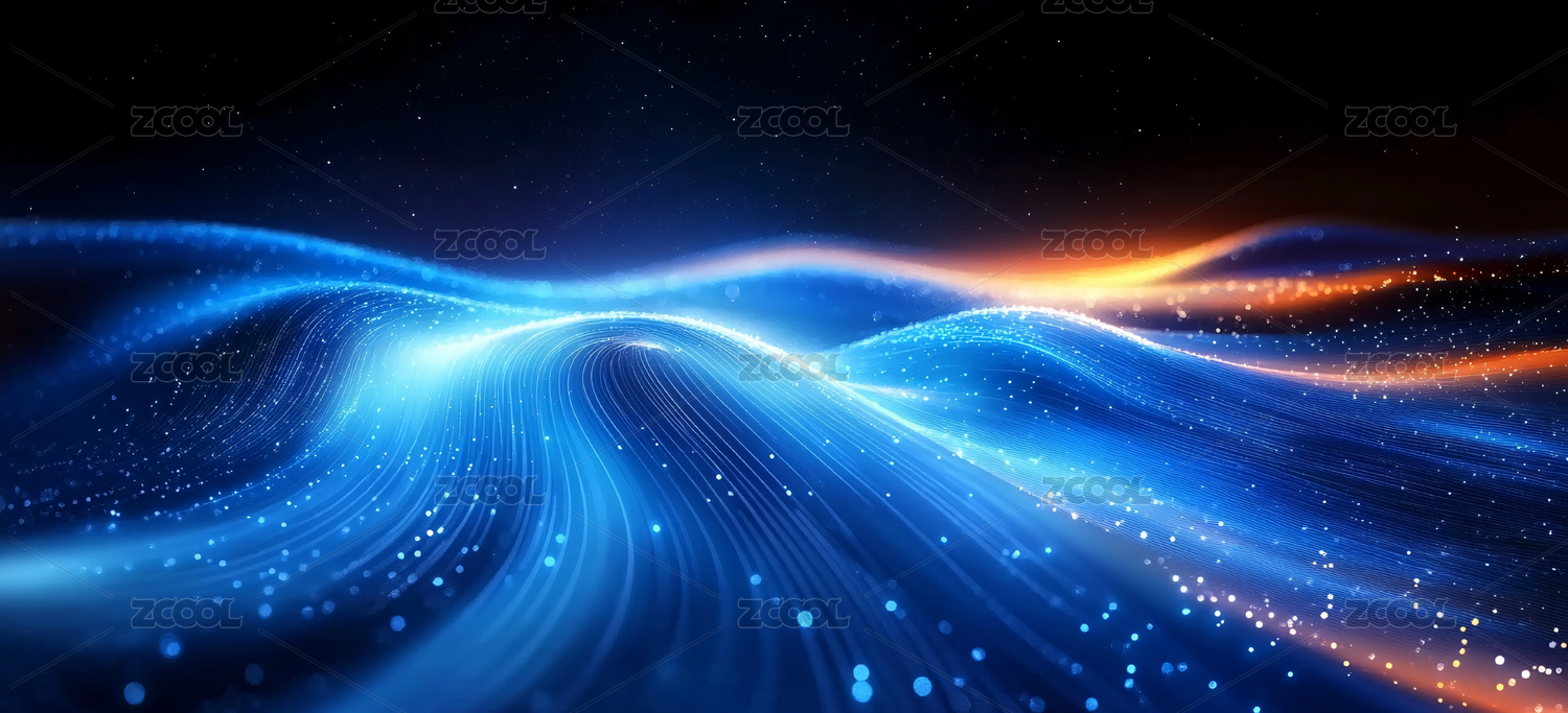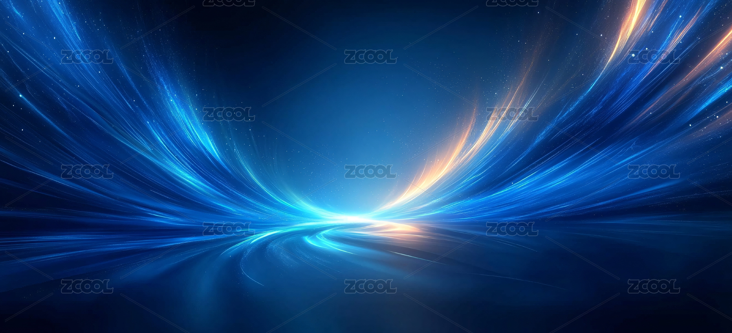 金色粒子流與藍(lán)色光帶交織的科技背景