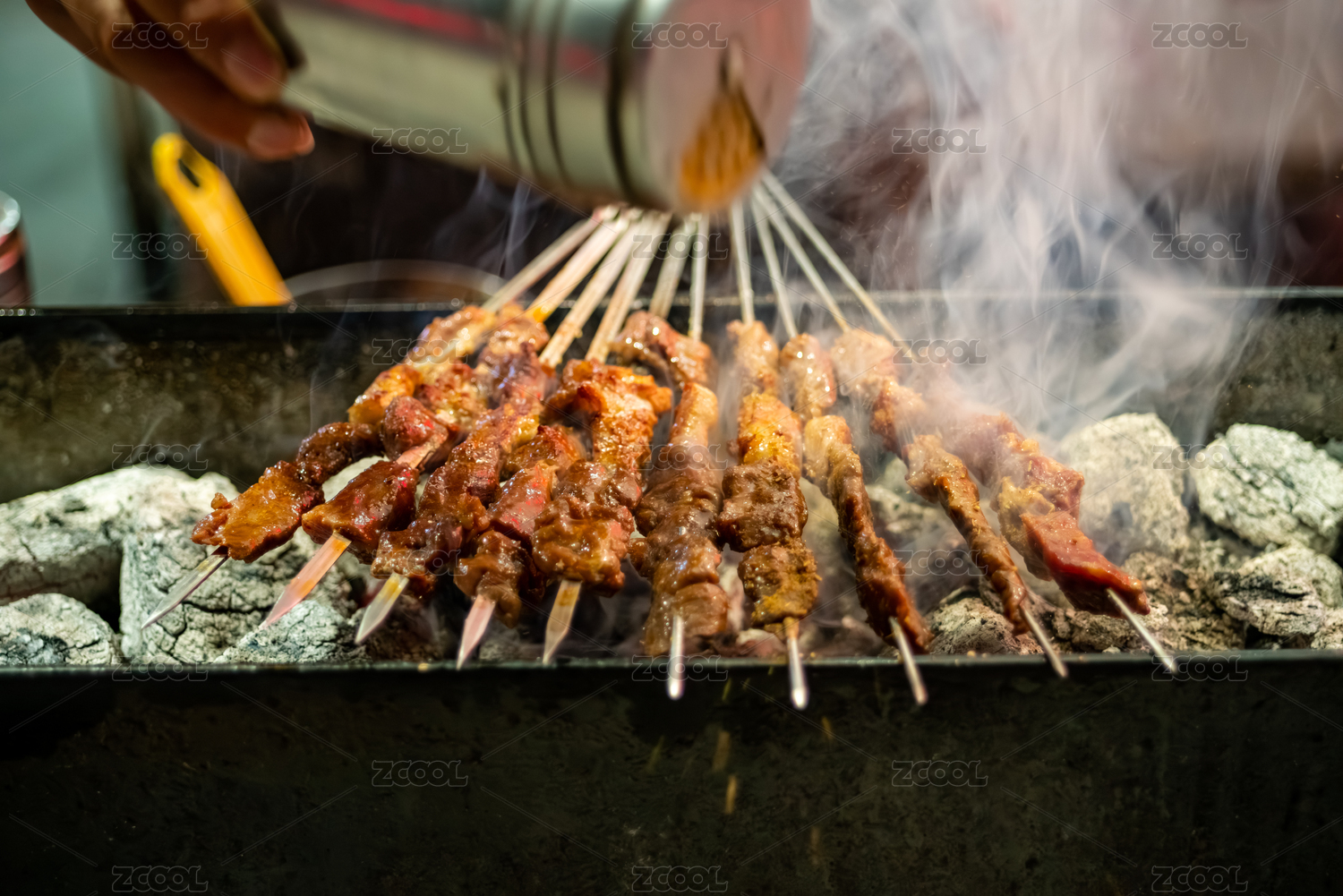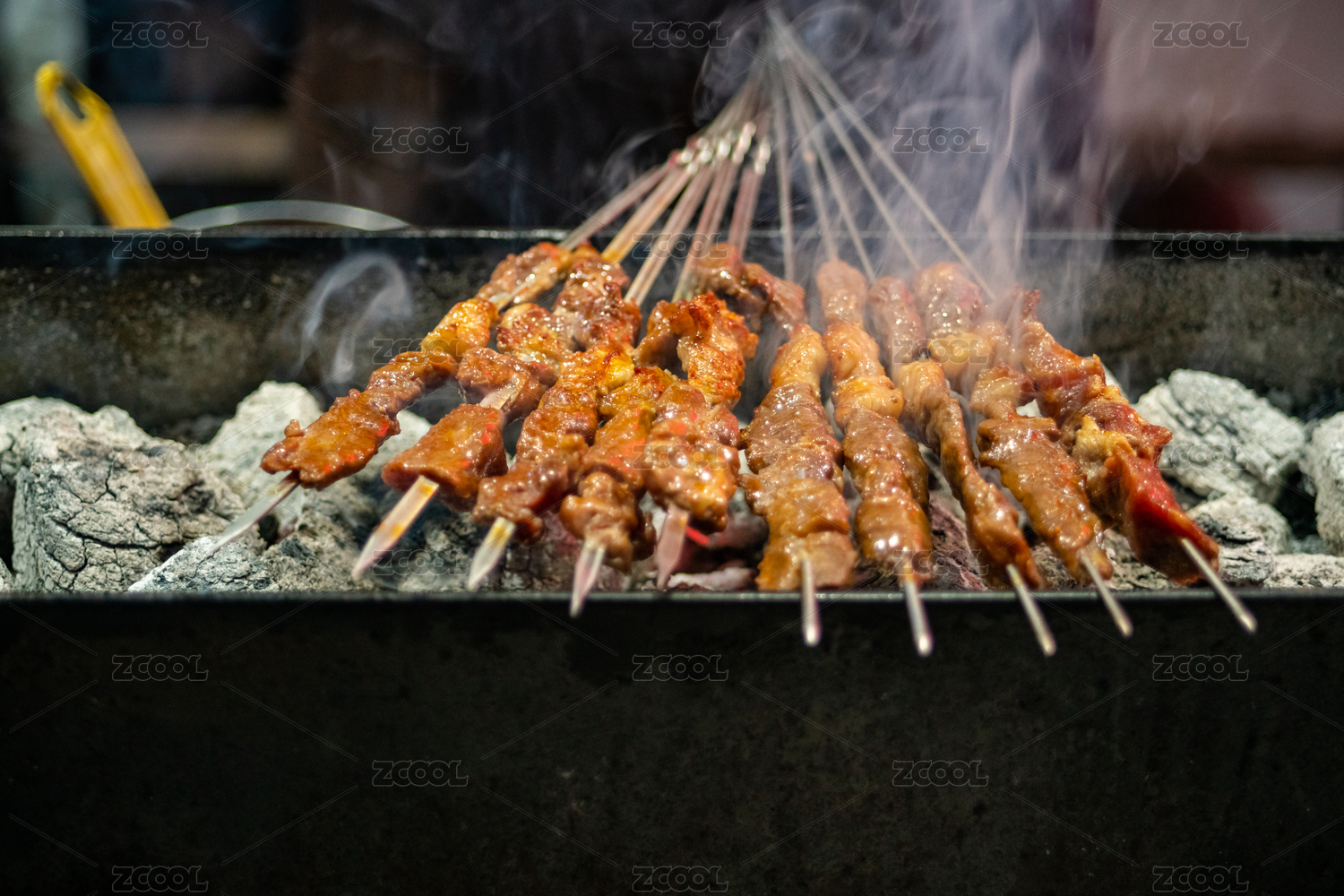 燒烤架上的新疆烤肉串特寫(xiě)鏡頭