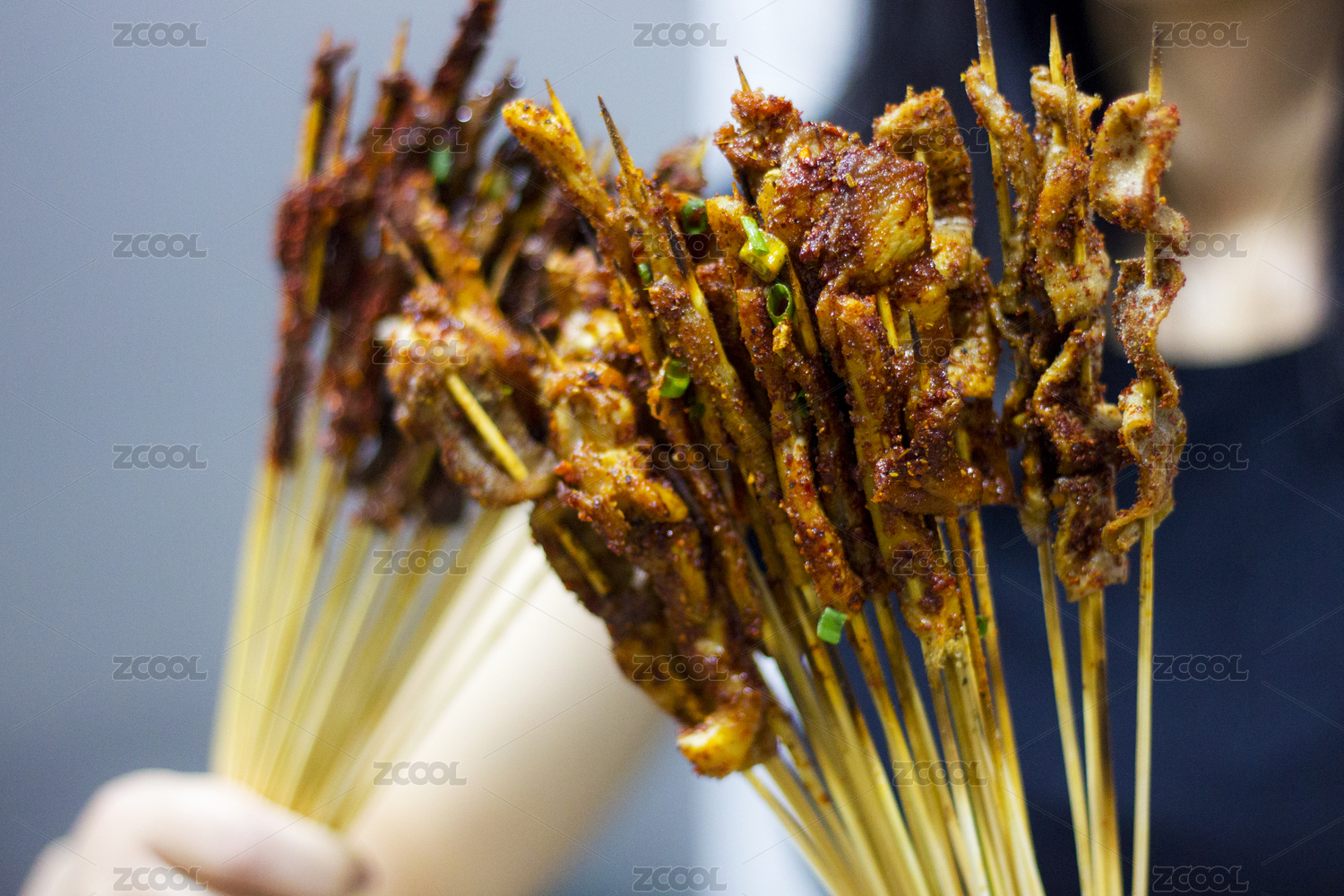 手拿烤肉串