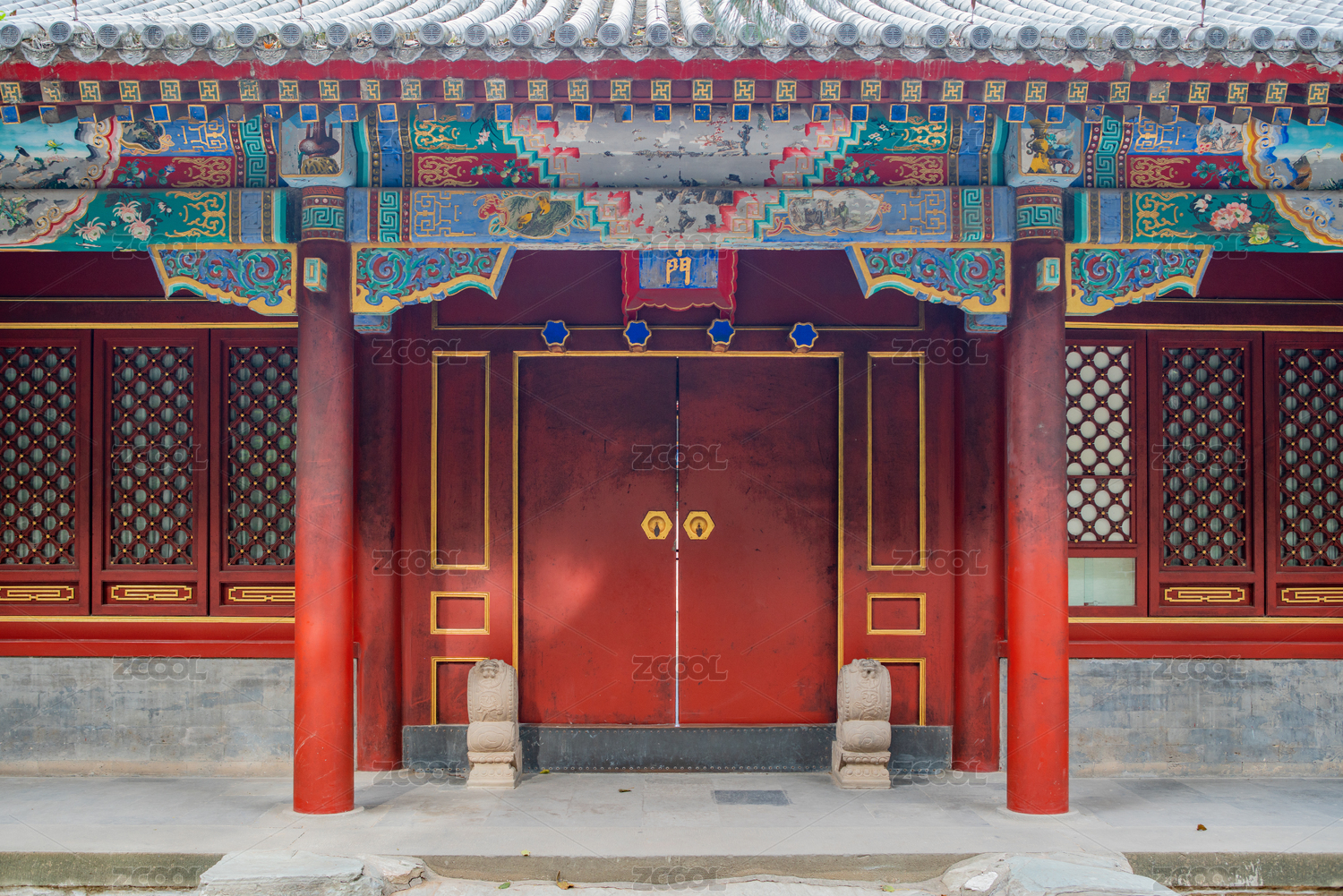 秋天頤和園古典宮門正面