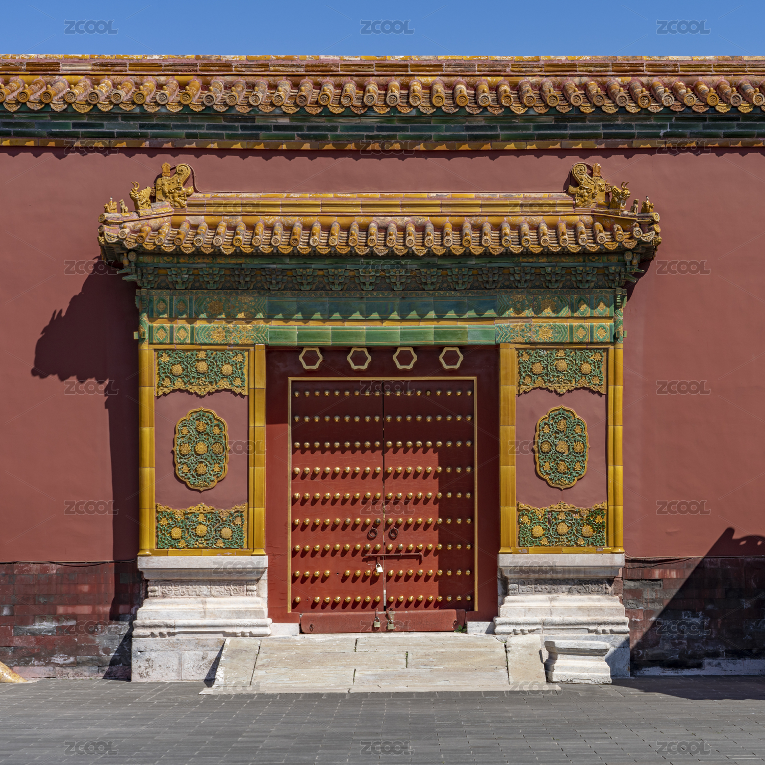 故宮紅色宮門紅墻黃瓦琉璃裝飾