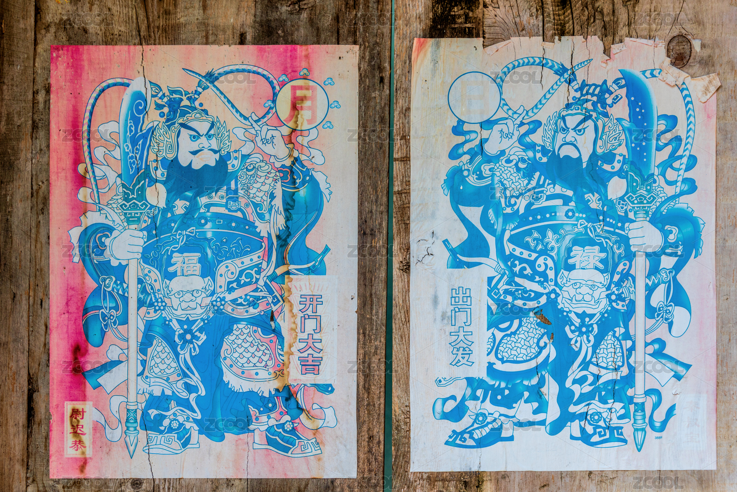 中國(guó)湖北荊門(mén)鐘祥莫愁村木門(mén)上貼的門(mén)神
