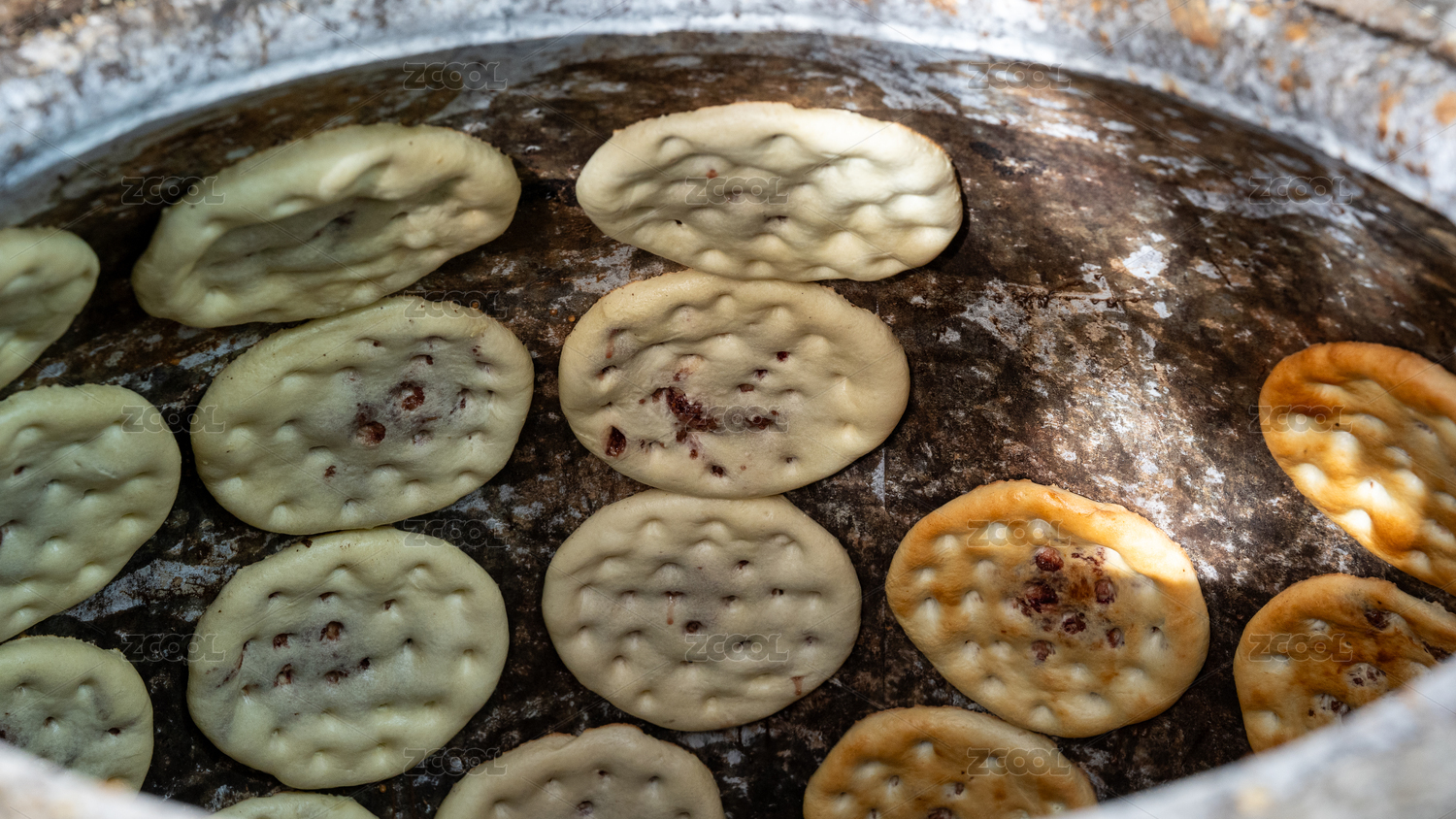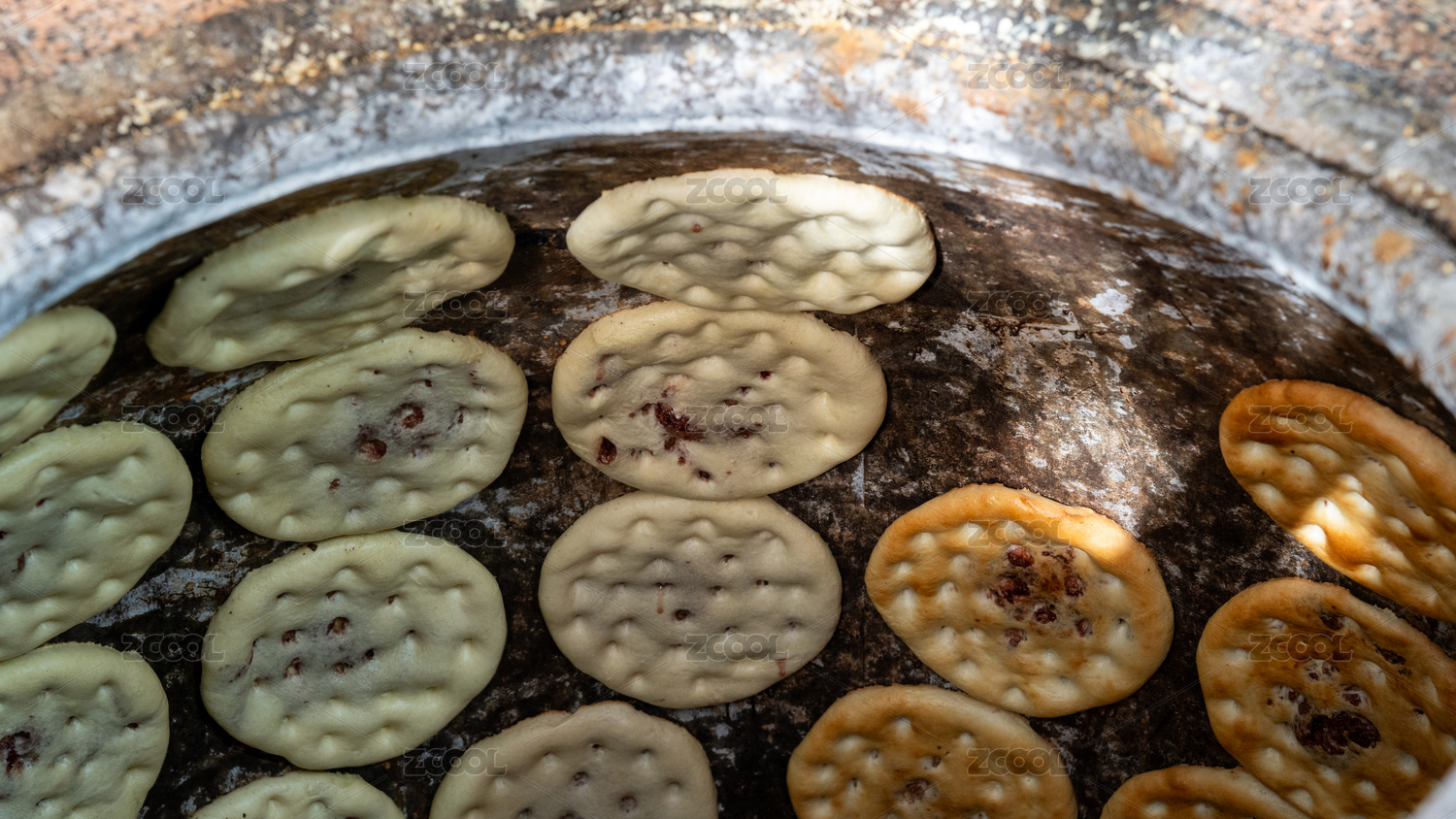 中國(guó)新疆特色食品馕坑里烘烤的馕