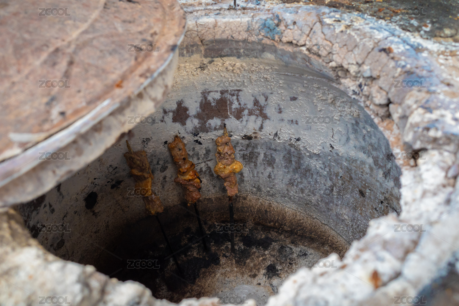 中國(guó)新疆傳統(tǒng)食物馕坑里的囊