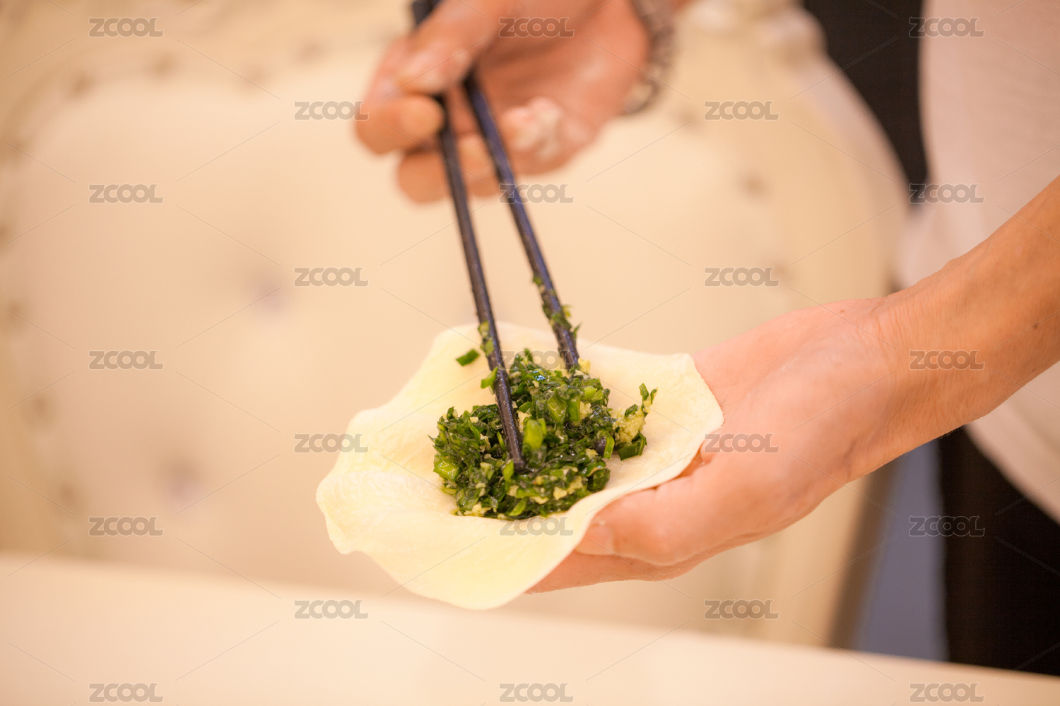 女性手工制作包包子