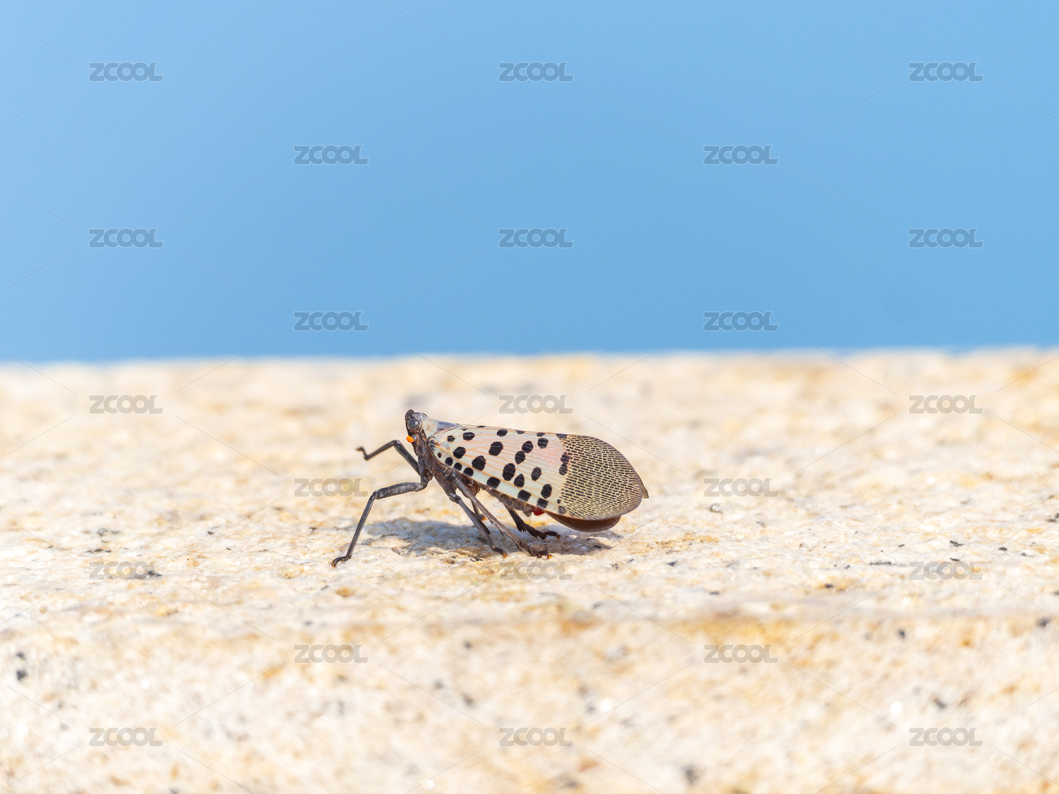樹(shù)干棲息節(jié)肢動(dòng)物門(mén)昆蟲(chóng)斑衣蠟蟬特寫(xiě)