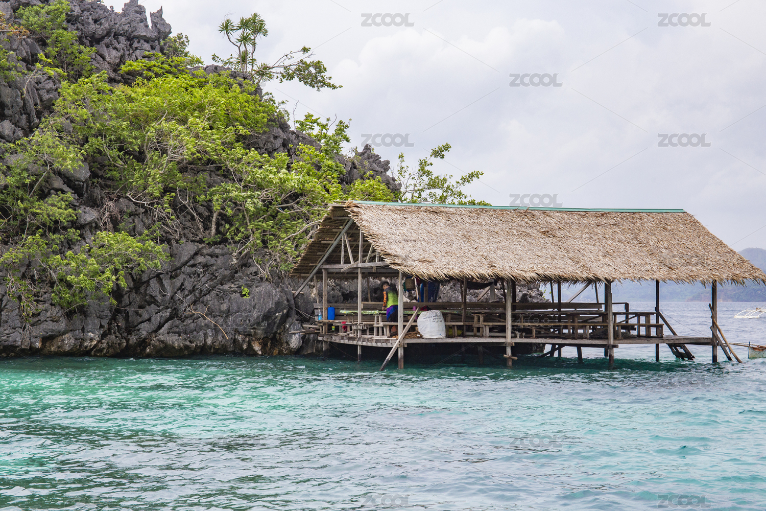 陰雨天在菲律賓科隆島的十字架山看科隆鎮(zhèn)和周邊海島