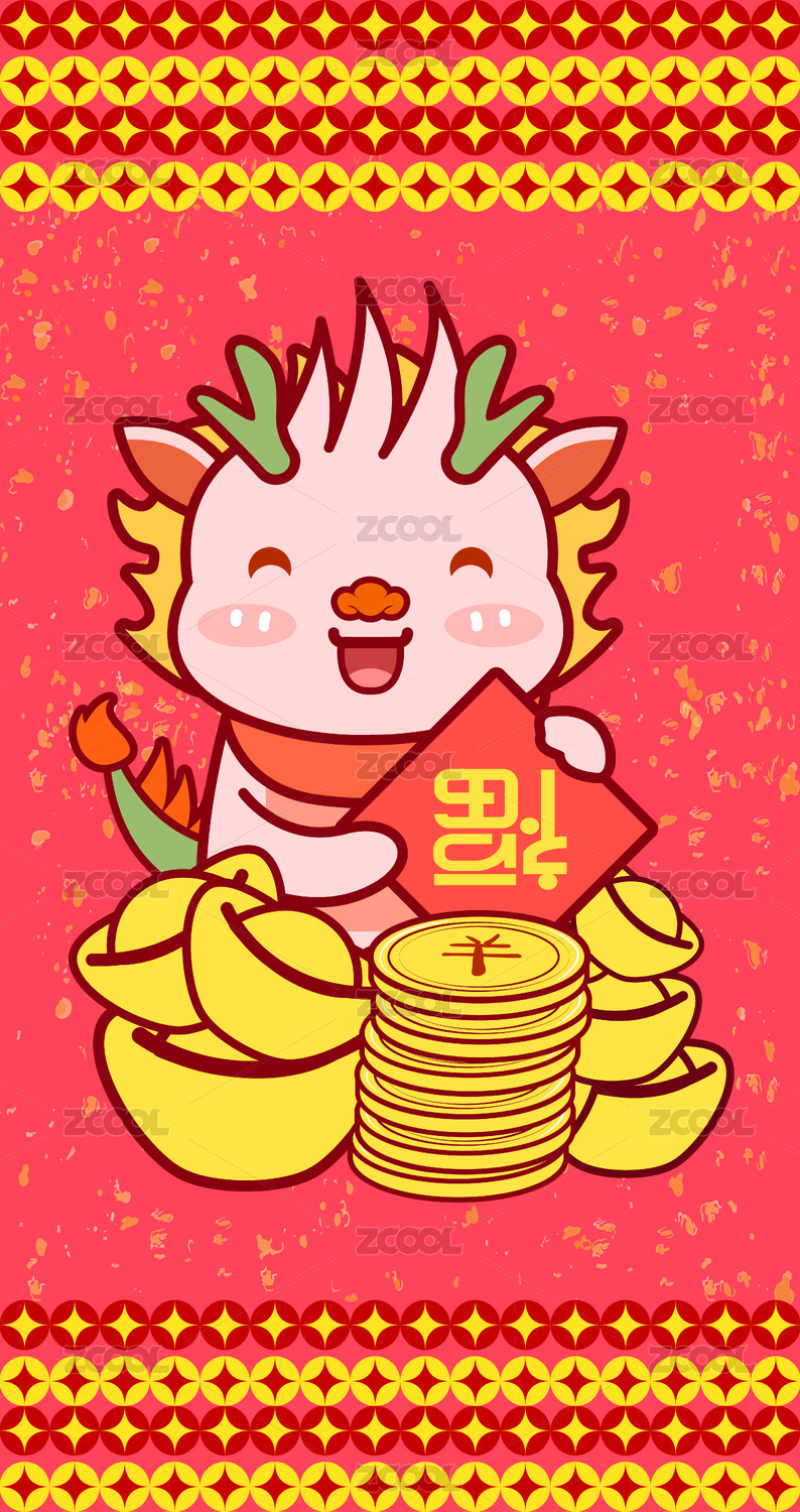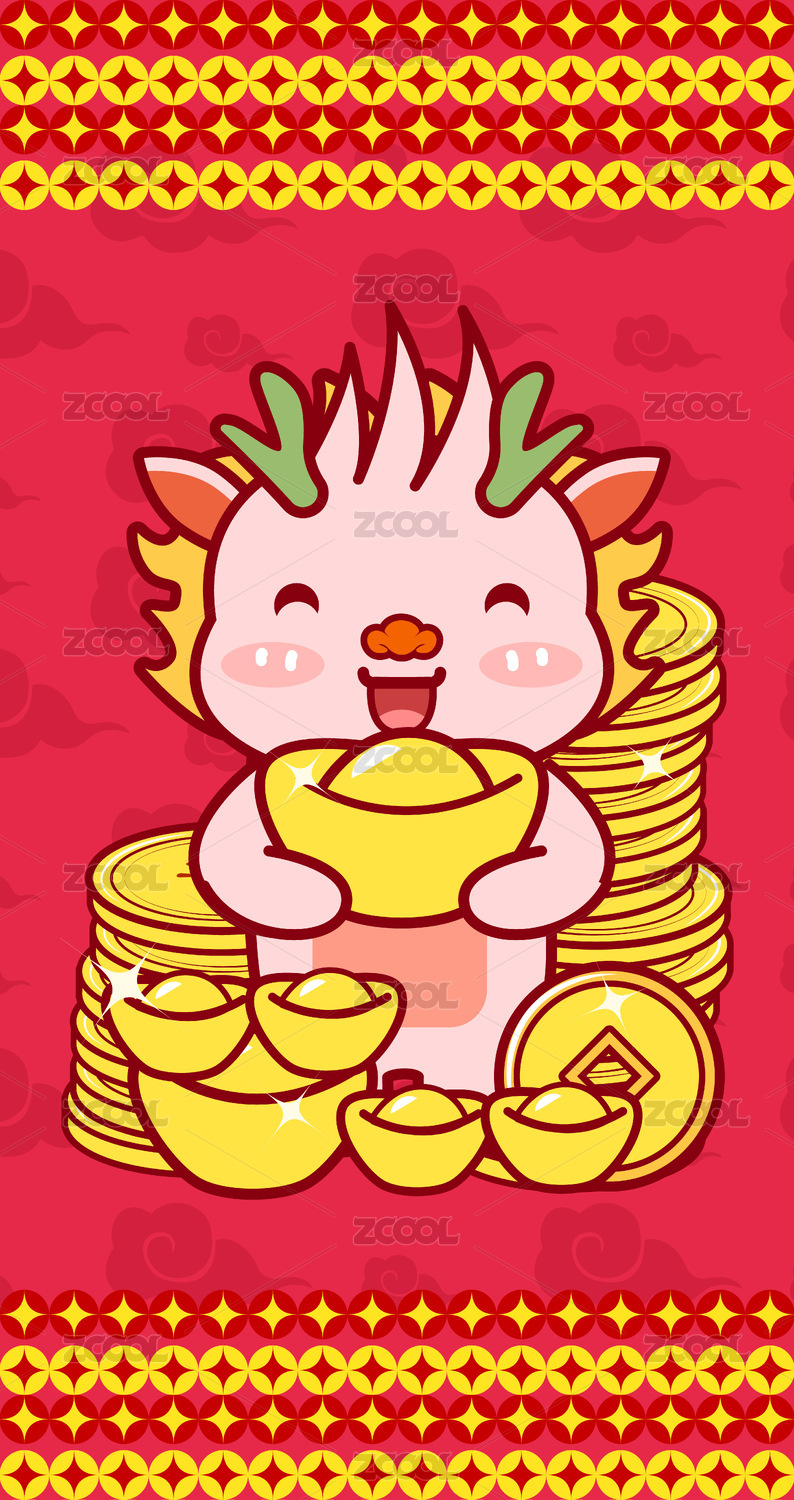 可愛小龍金元寶銅錢大號紙質(zhì)紅包封面插畫
