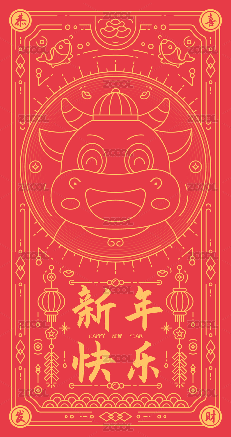 新年2021年牛年春節(jié)紅包封面設計插畫