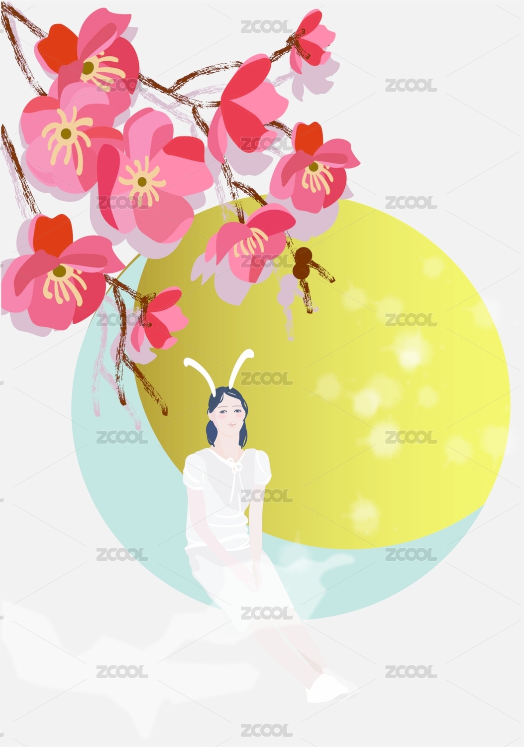一個圓月下穿著白色連衣裙的女孩