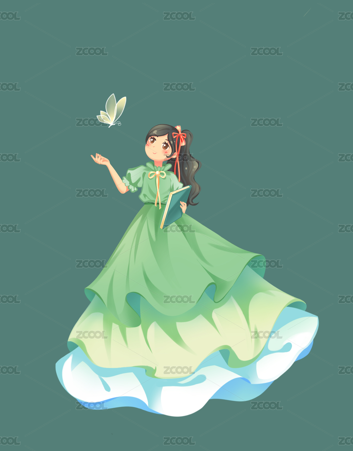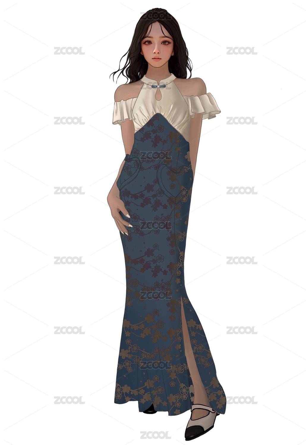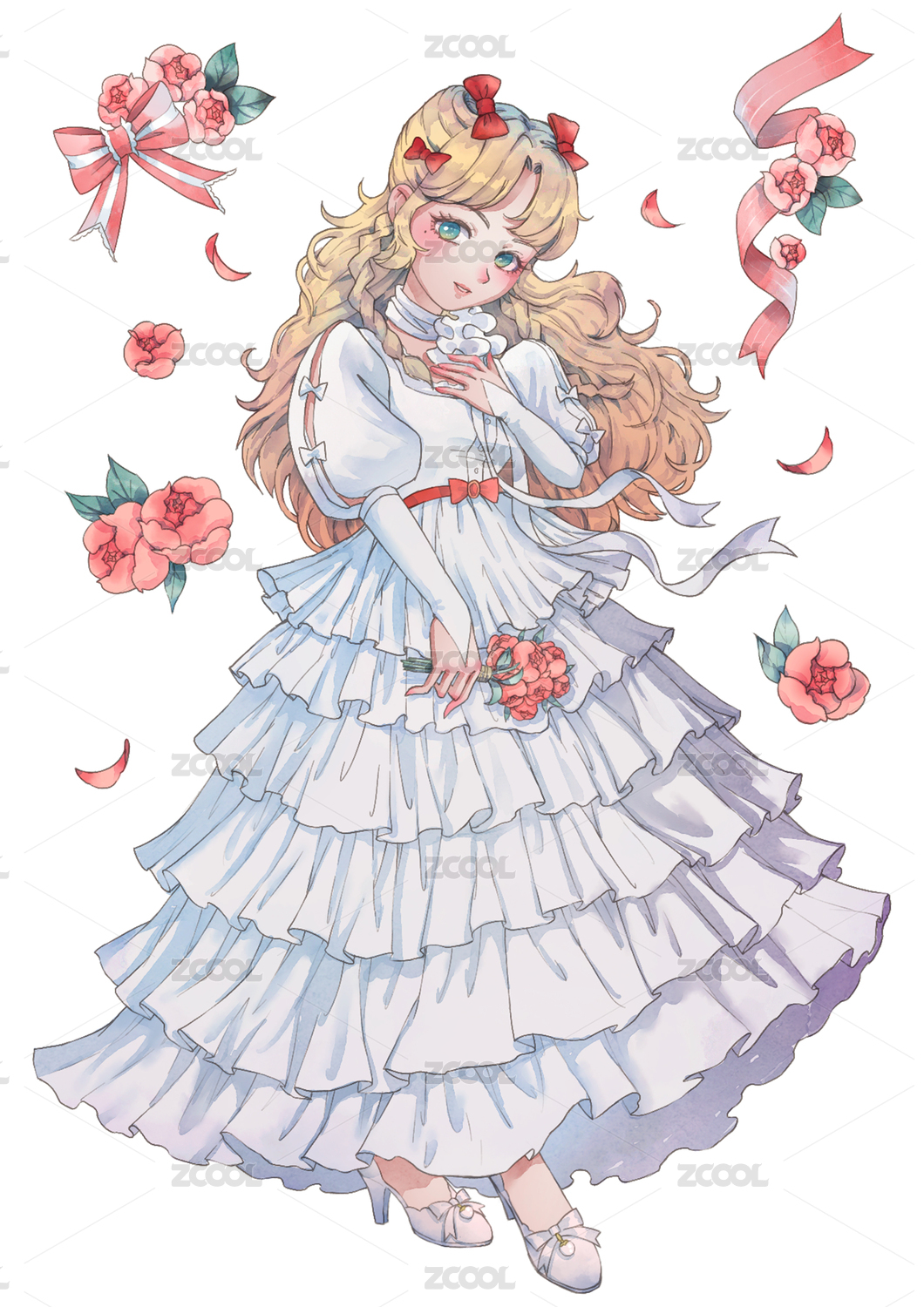 二次元亂世佳人禮服連衣裙女孩插畫