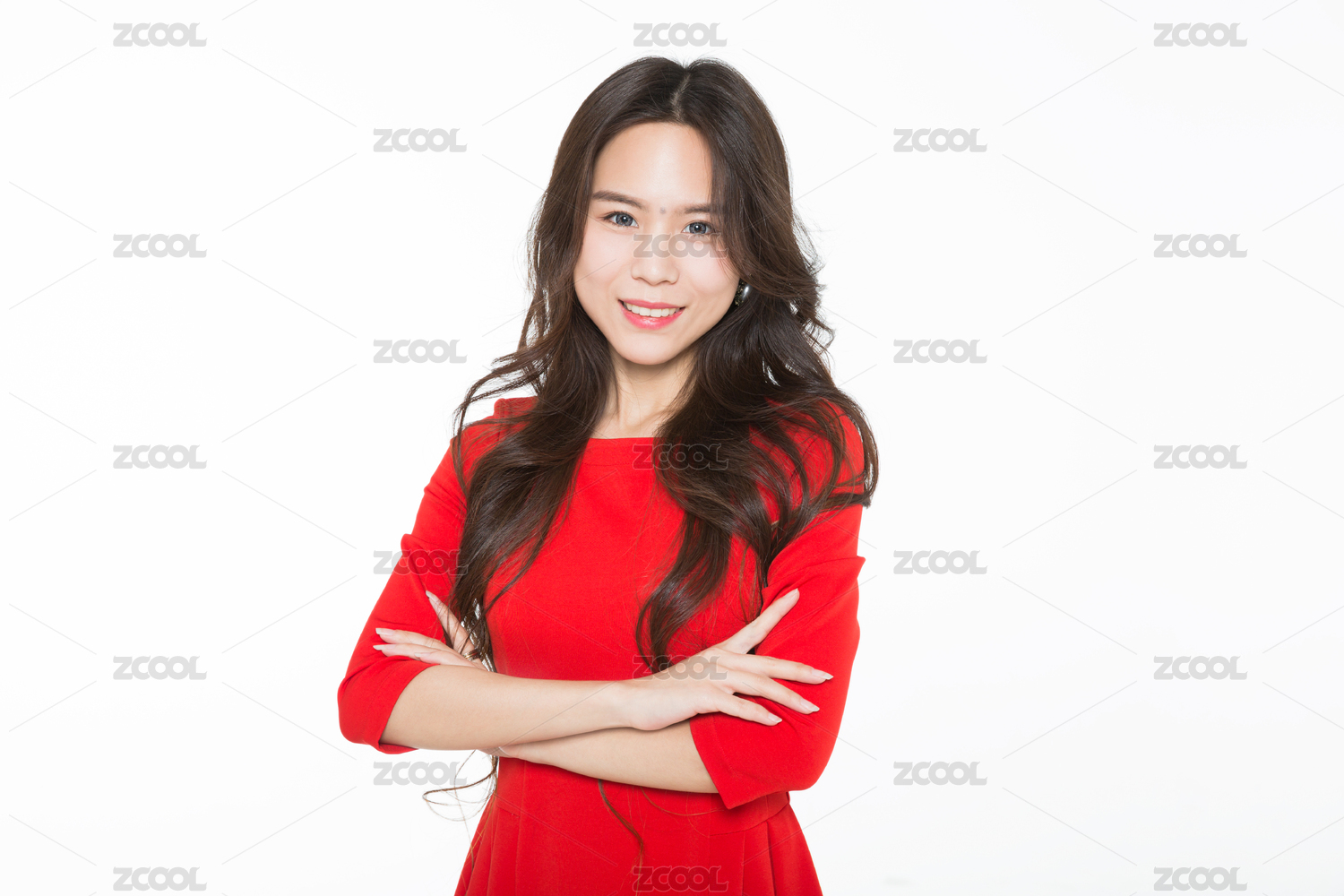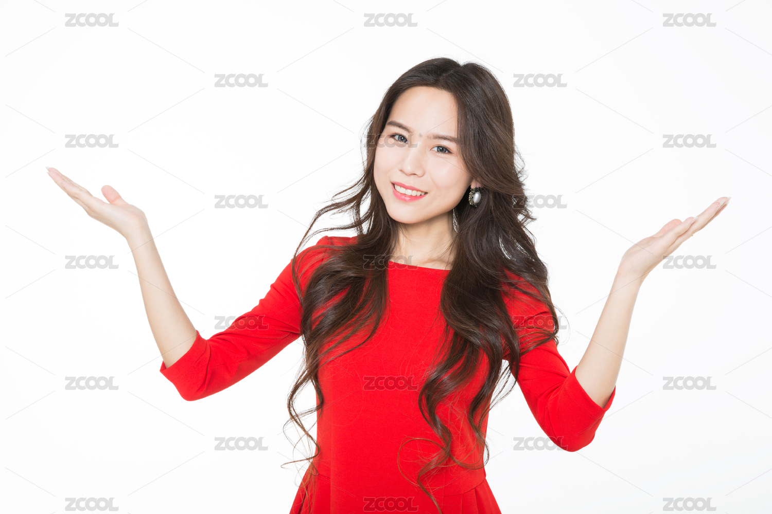 穿紅色連衣裙的年輕女子形象