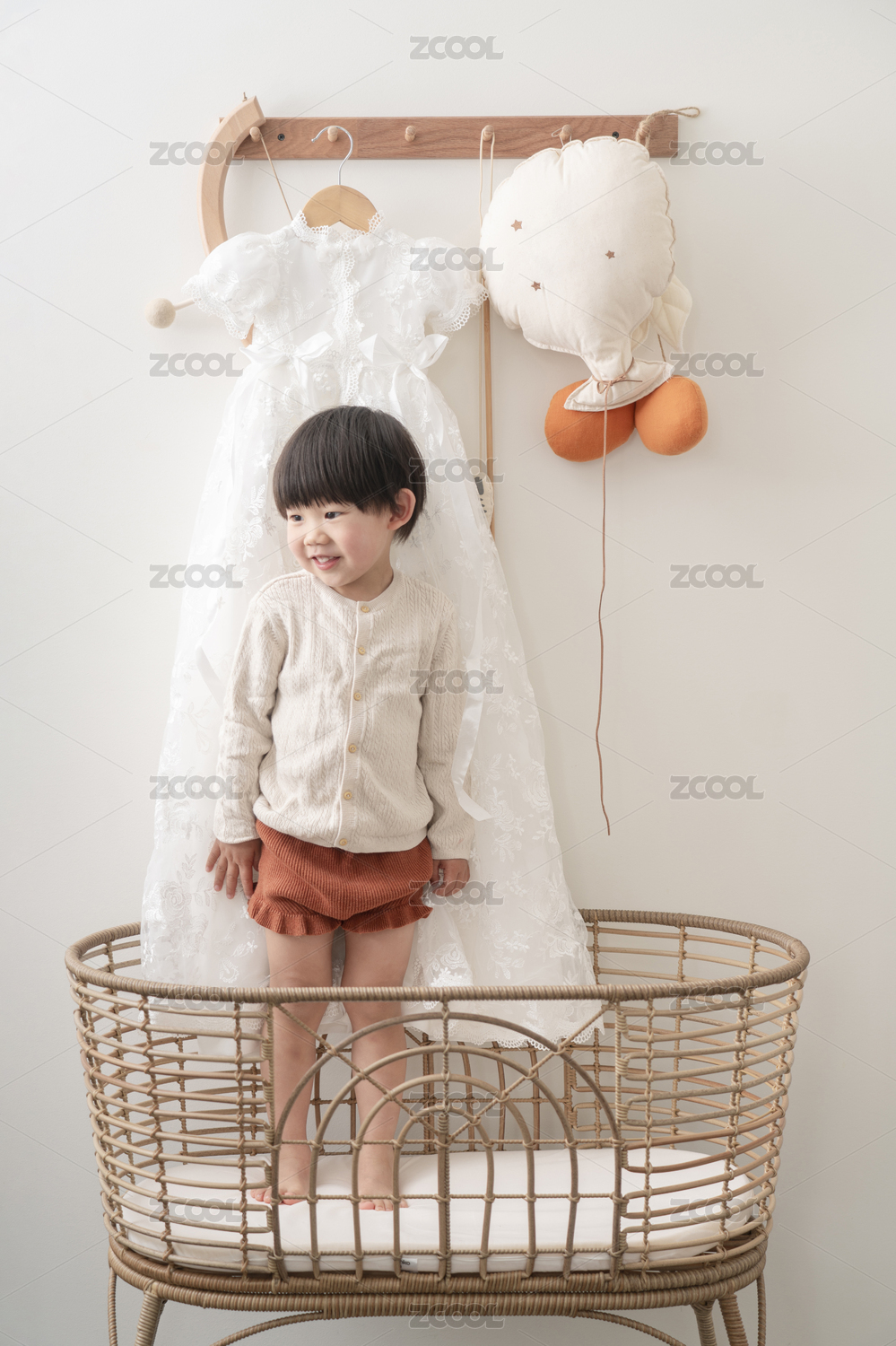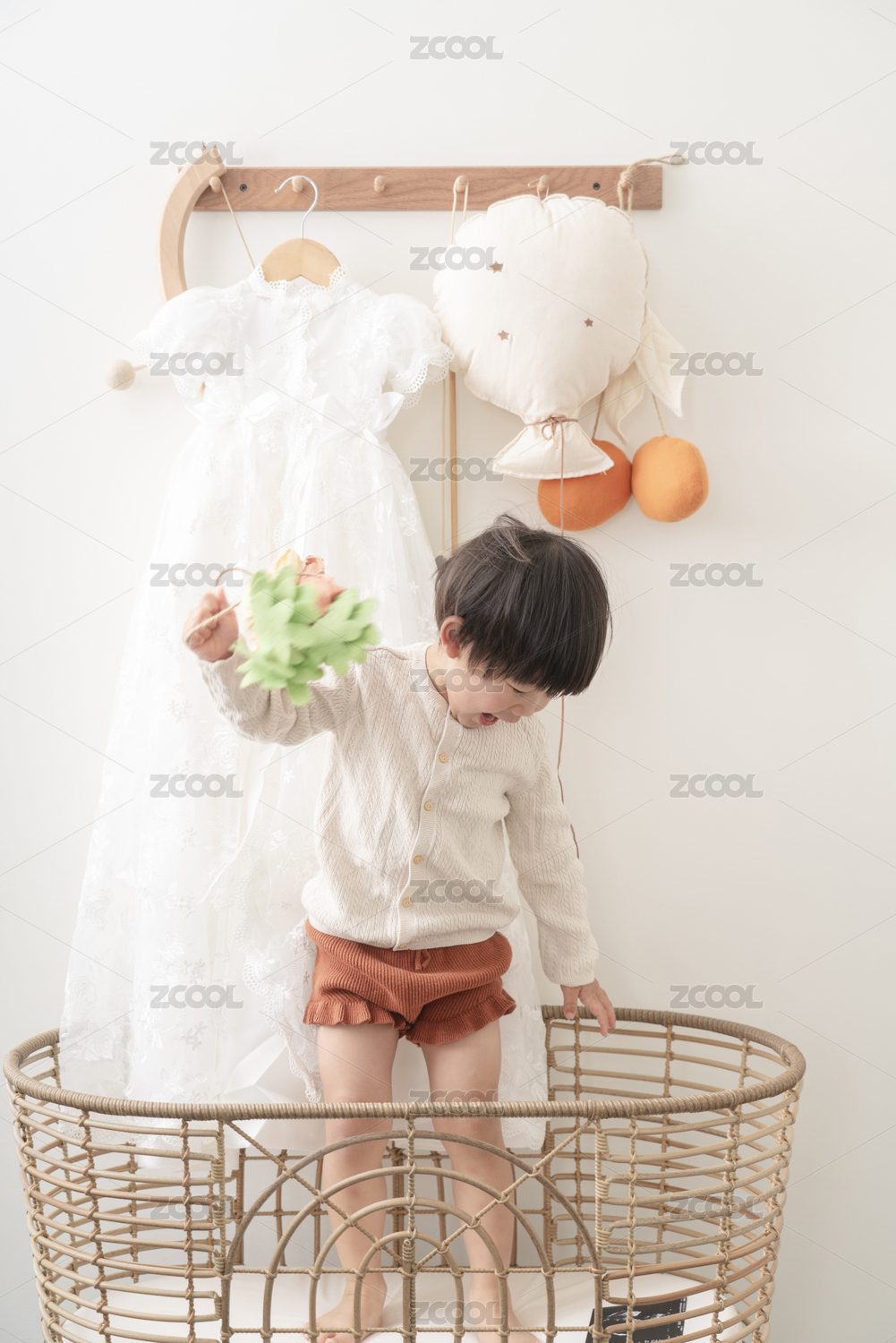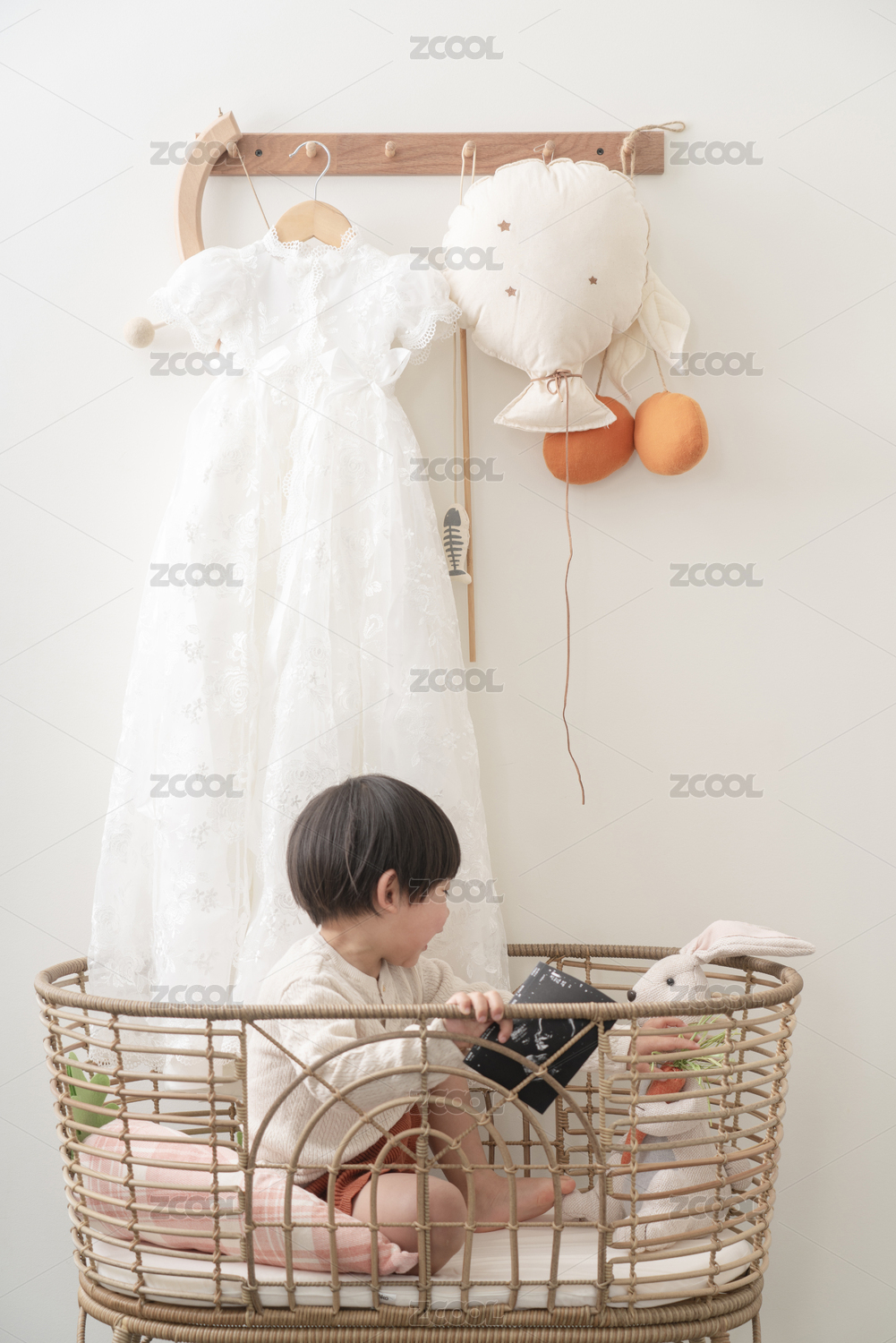 室內(nèi)穿著白色連衣裙的女孩