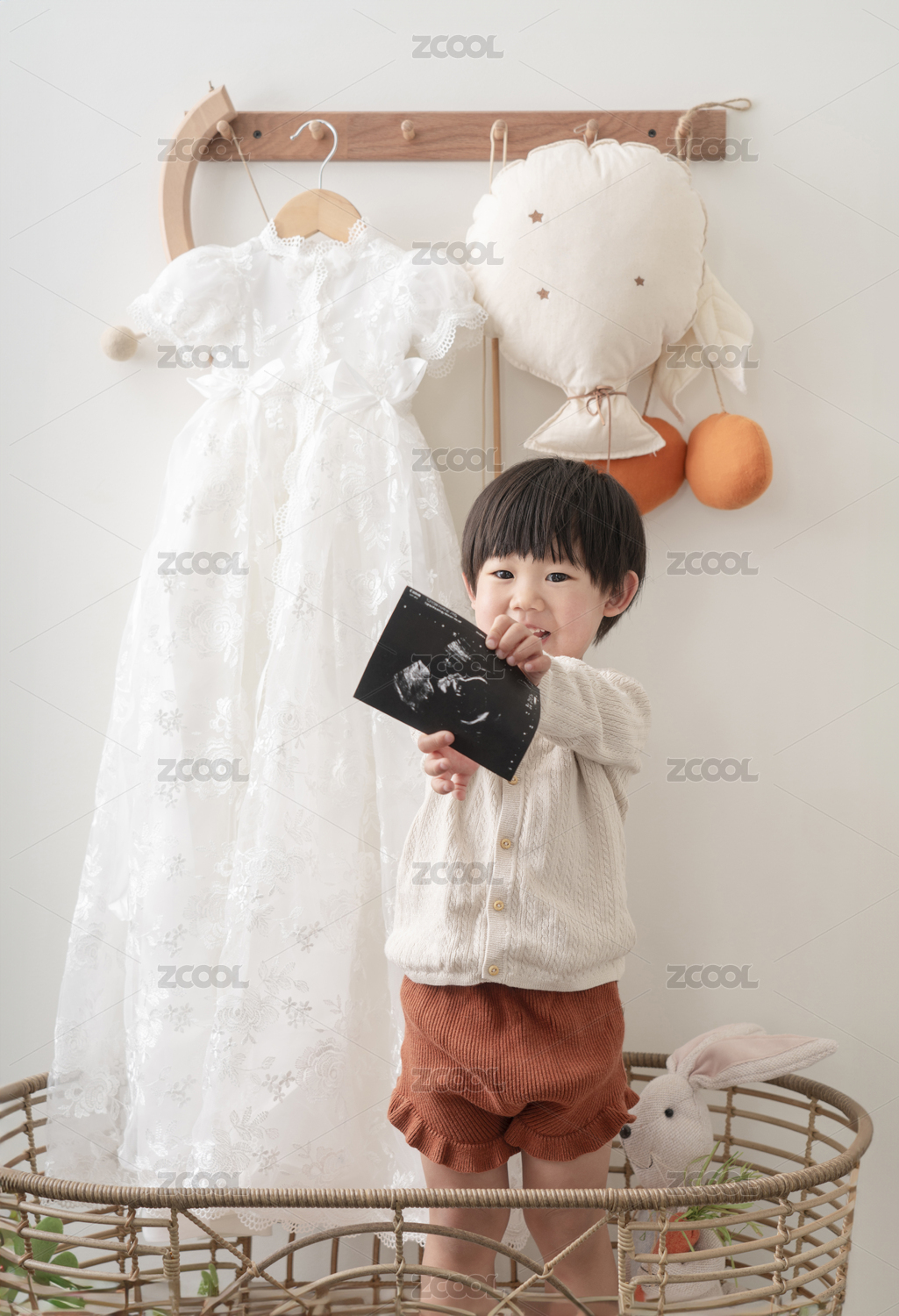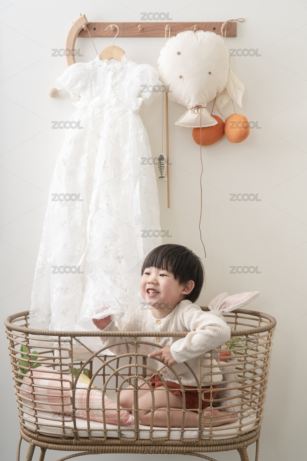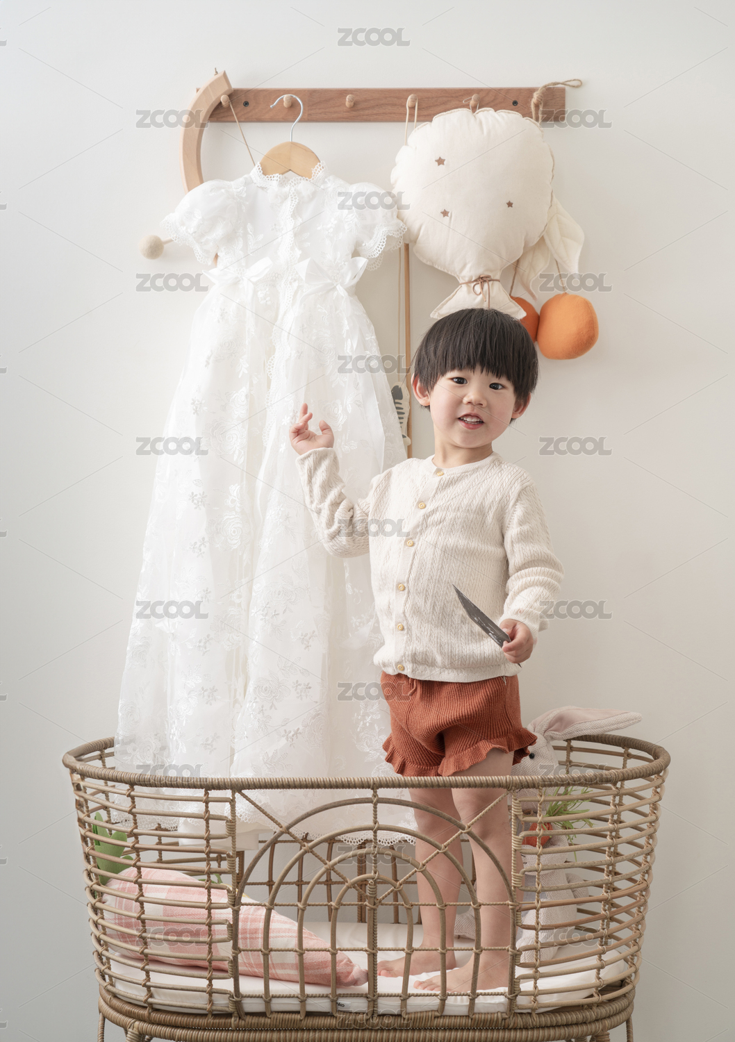 室內(nèi)穿著白色連衣裙的女孩