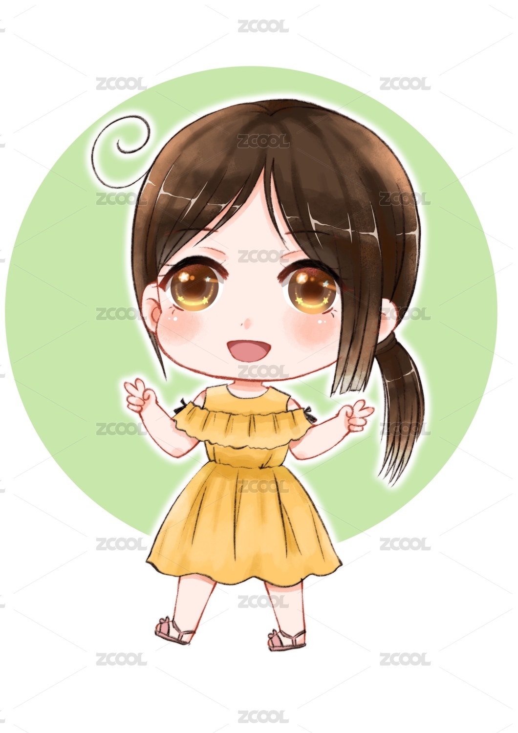 穿著黃色連衣裙的馬尾女孩