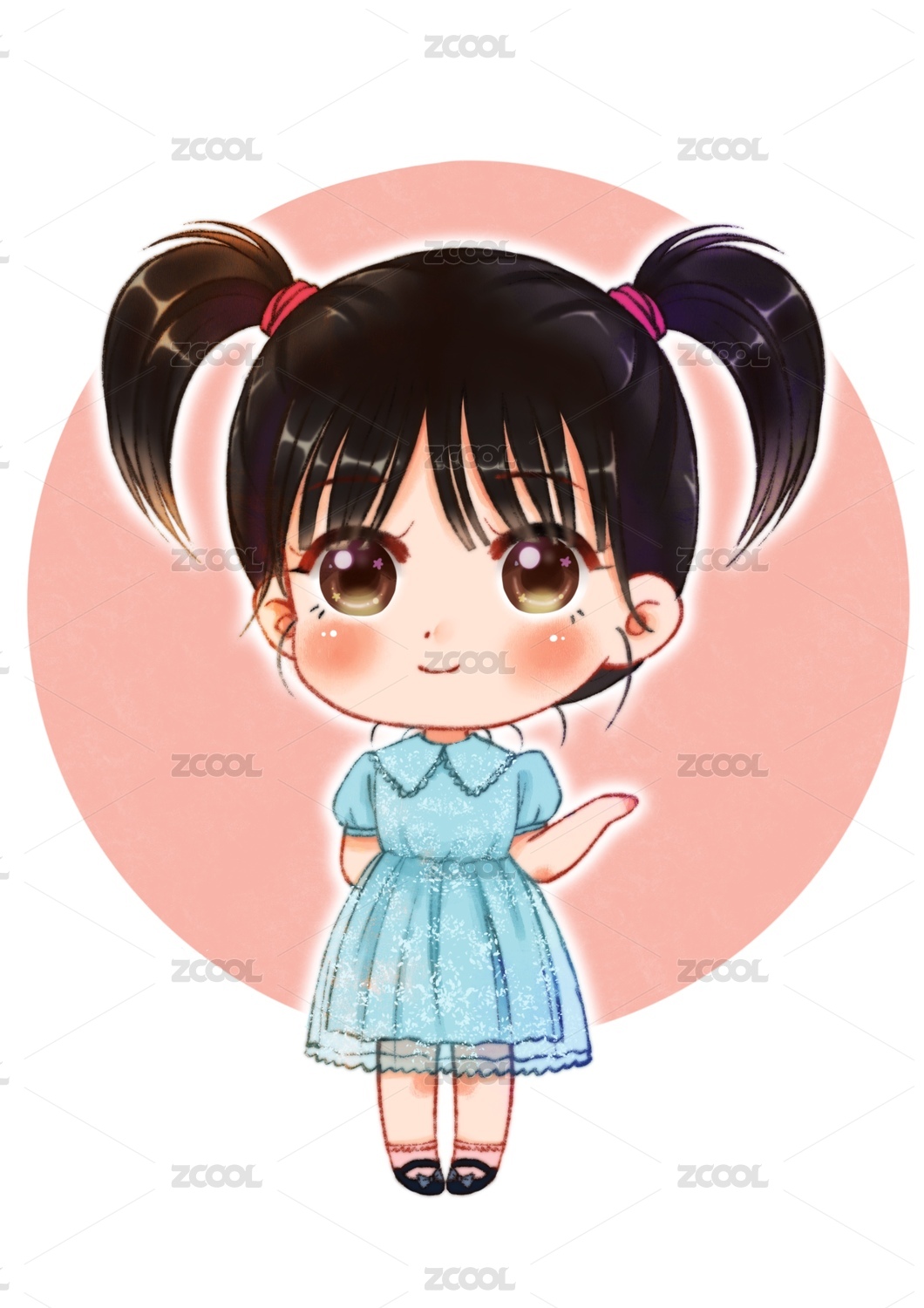 穿著藍(lán)色連衣裙的雙馬尾女孩
