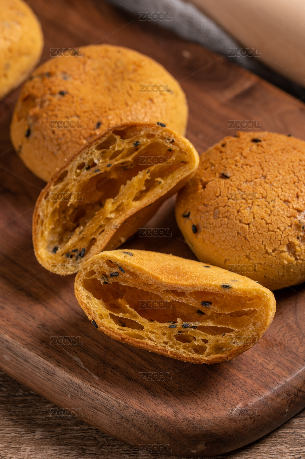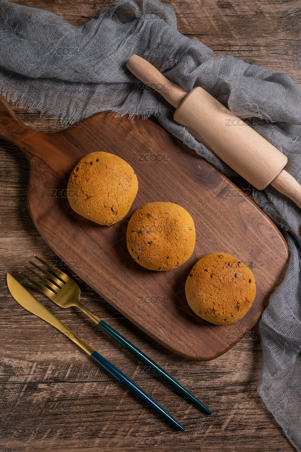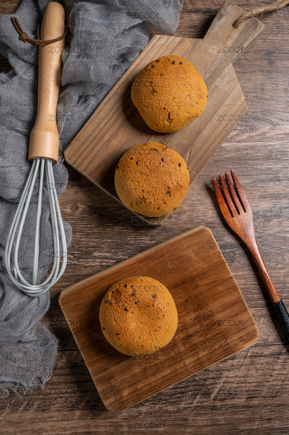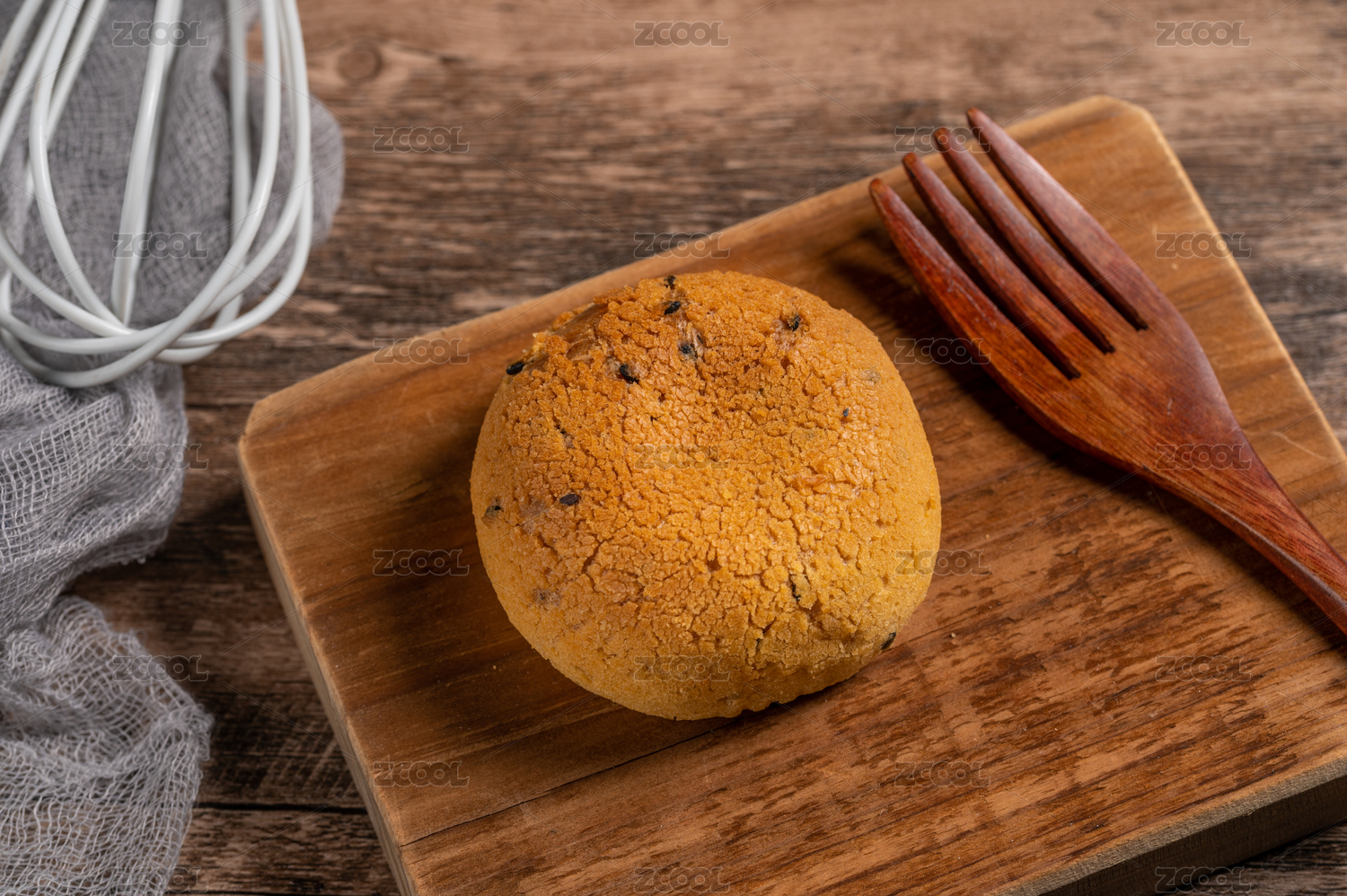 木板上的麻薯面包