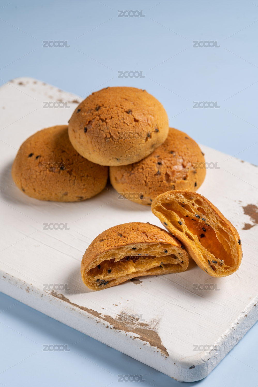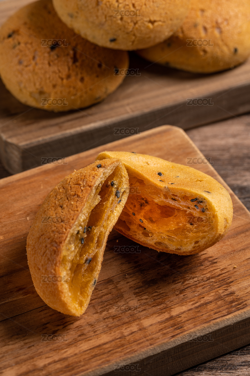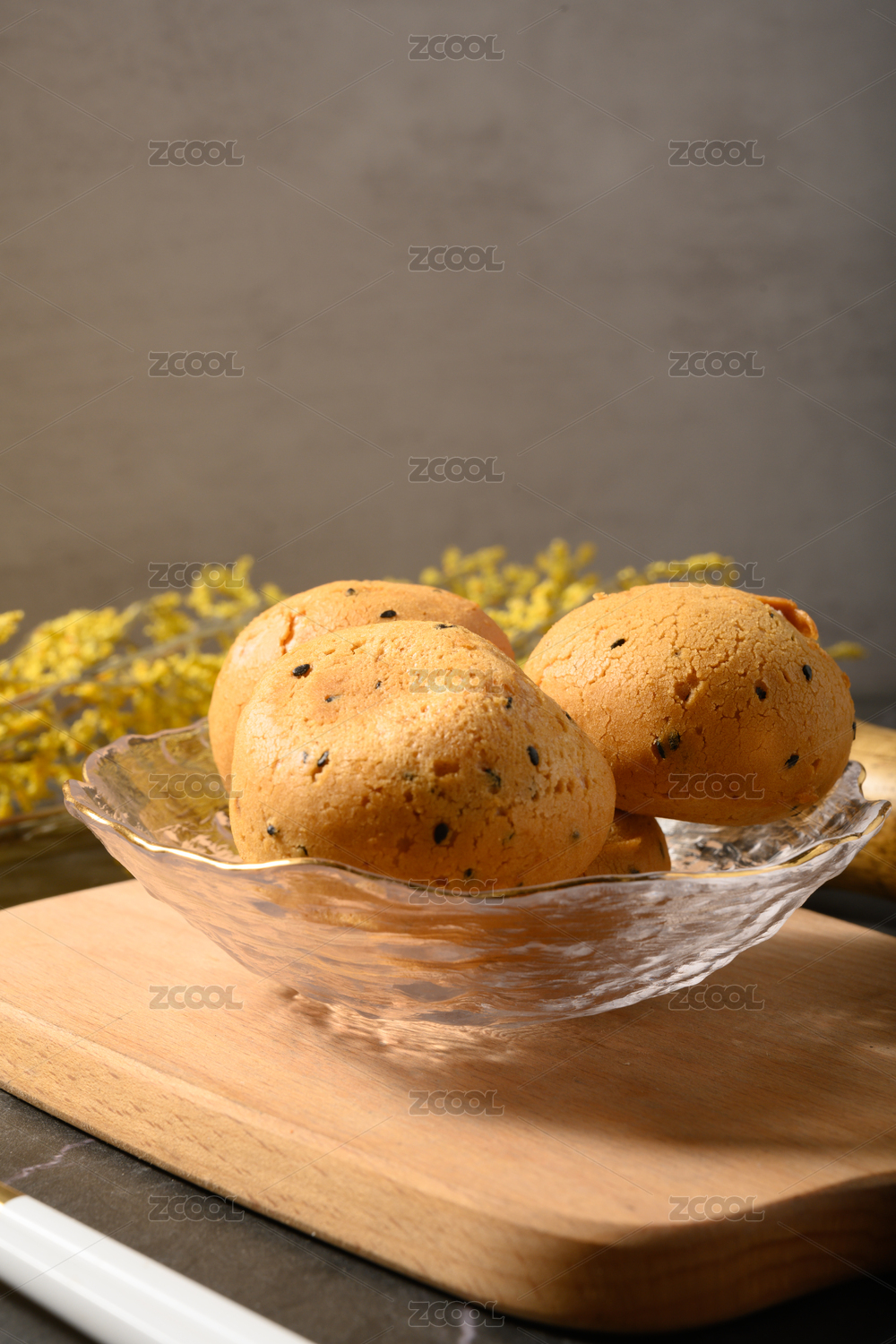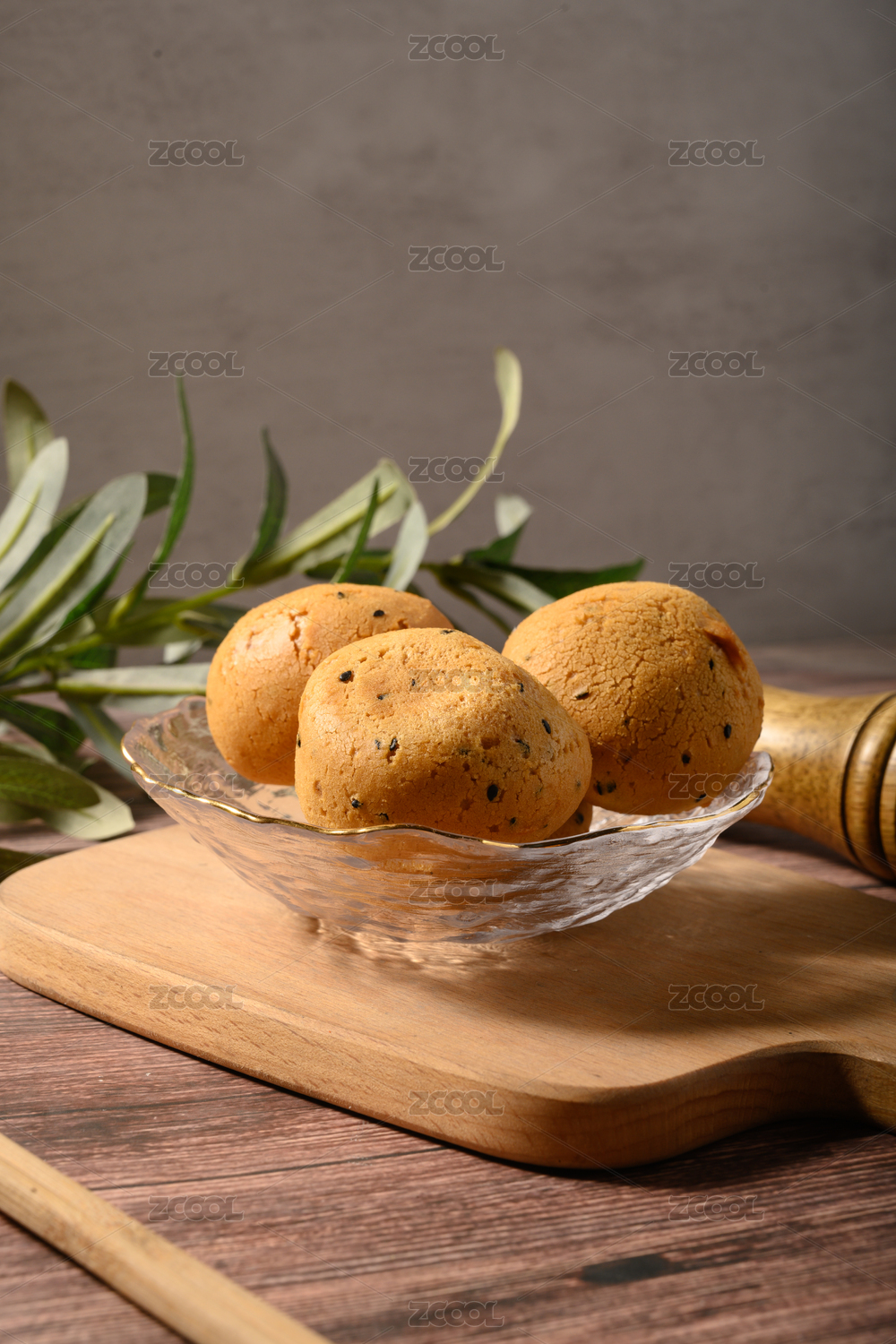 木板上的麻薯面包