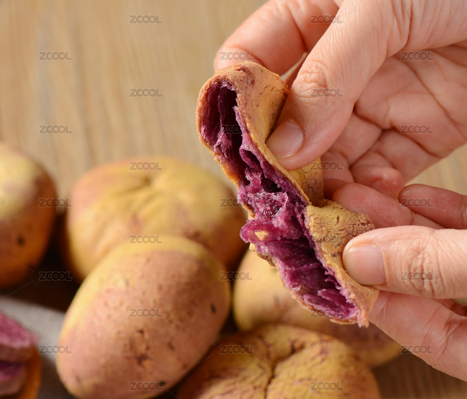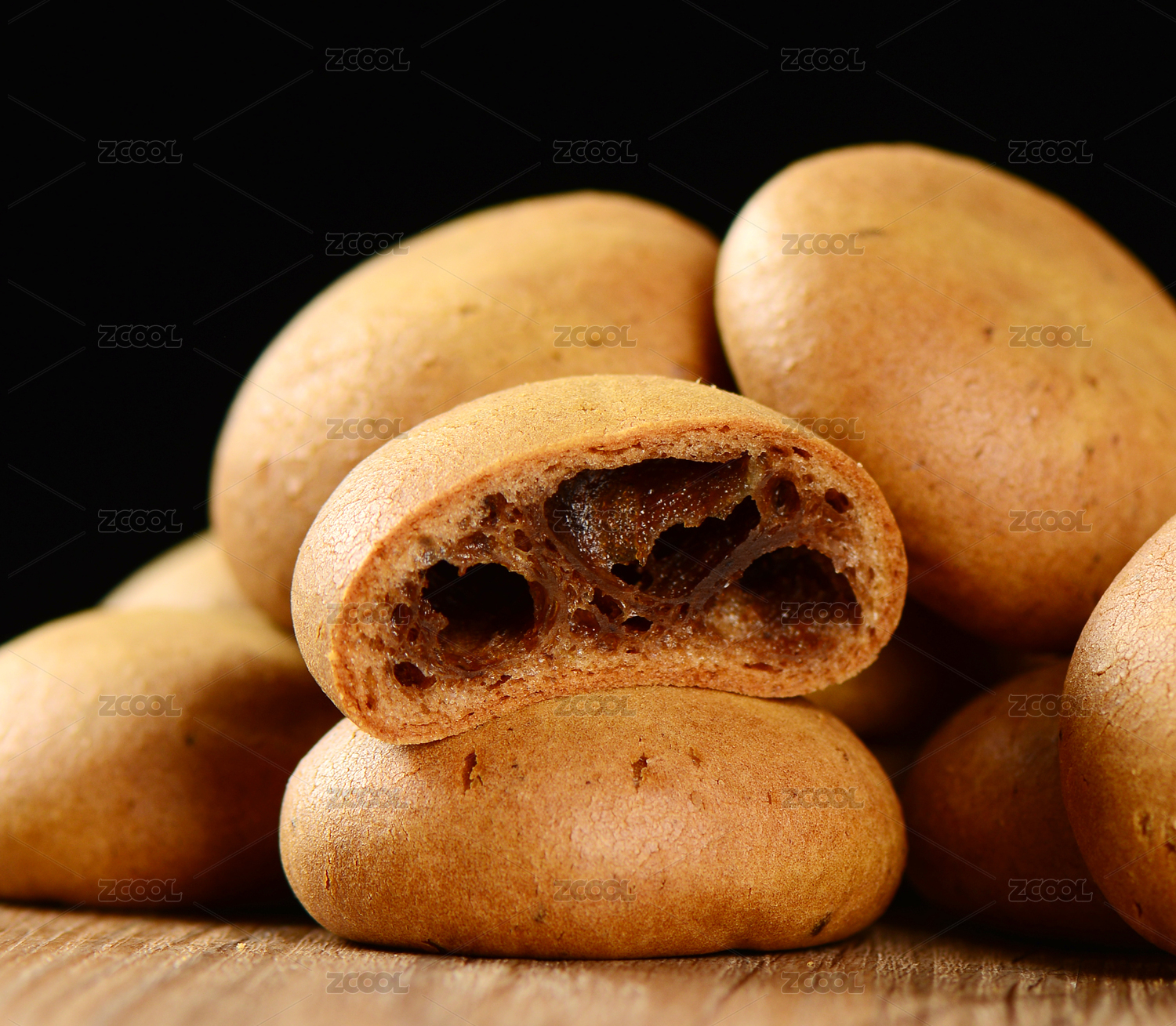 木紋桌上的麻薯面包