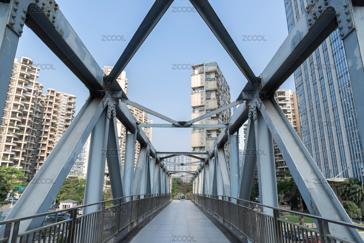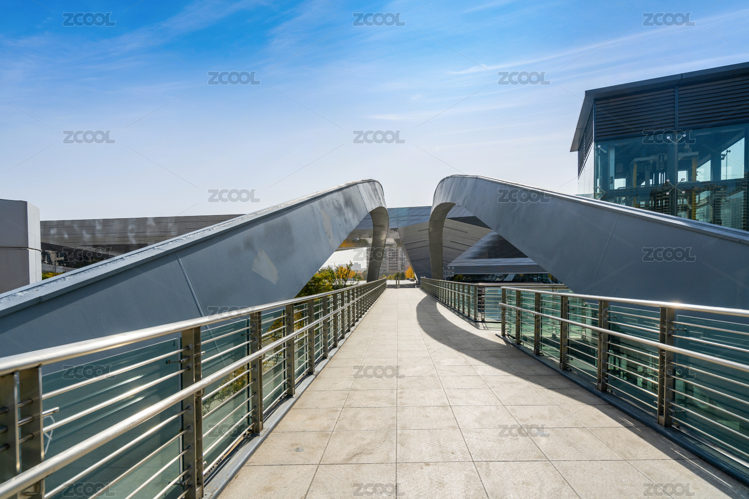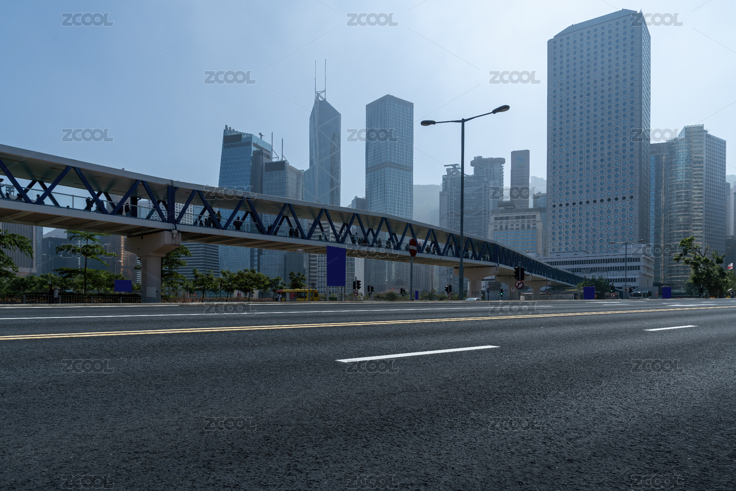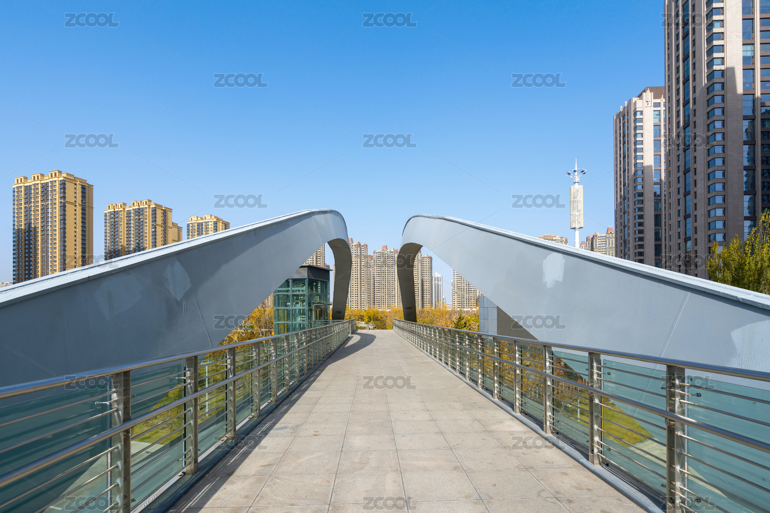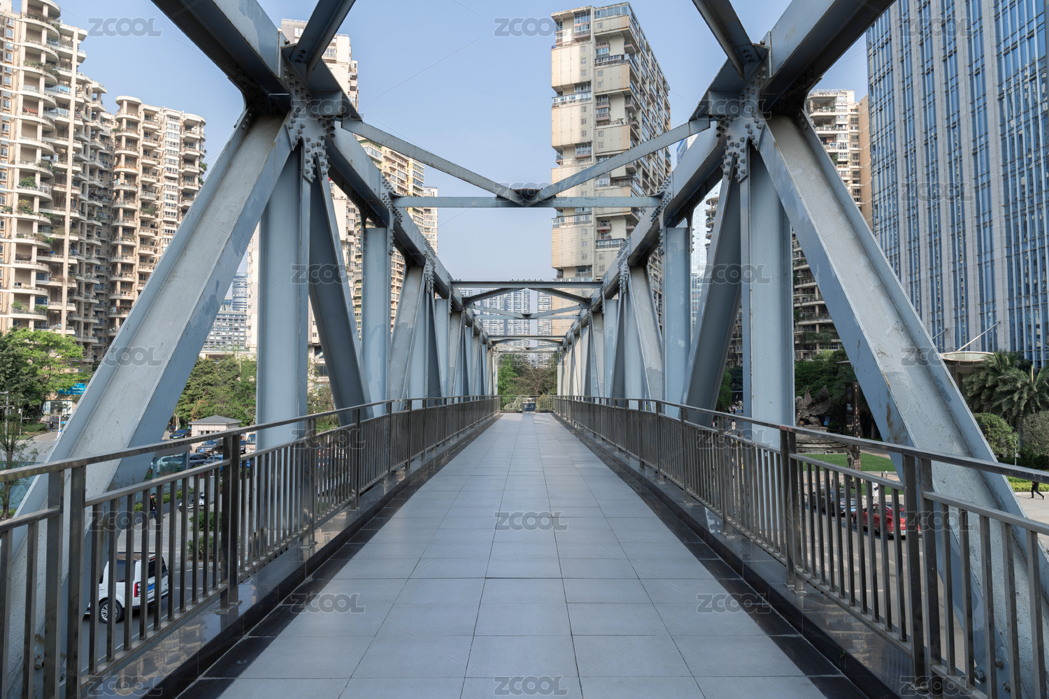 現(xiàn)代都市天際線(xiàn)與人行天橋
