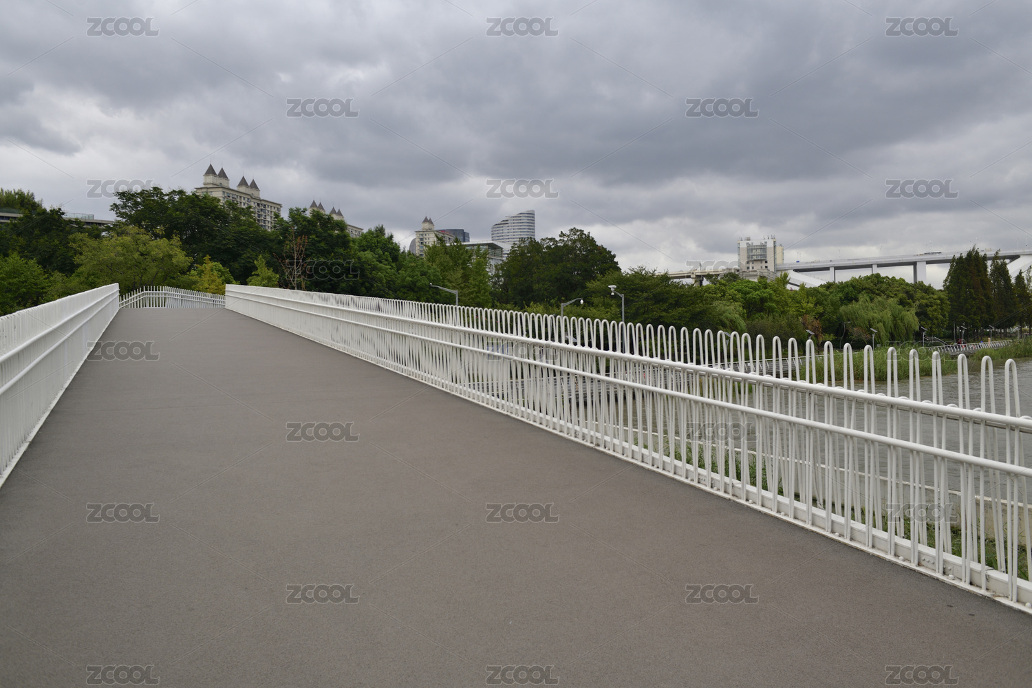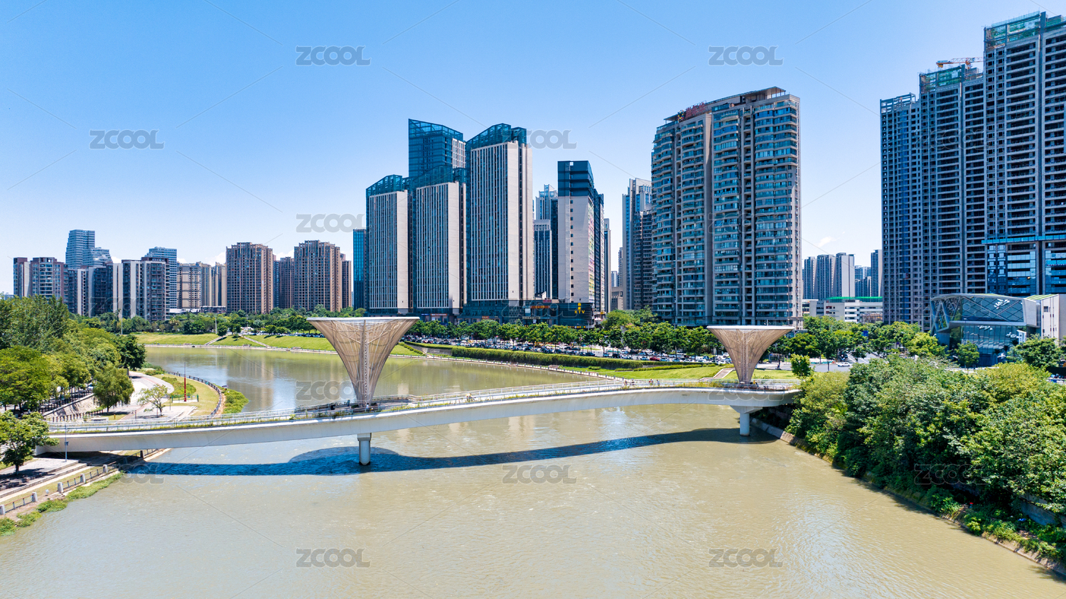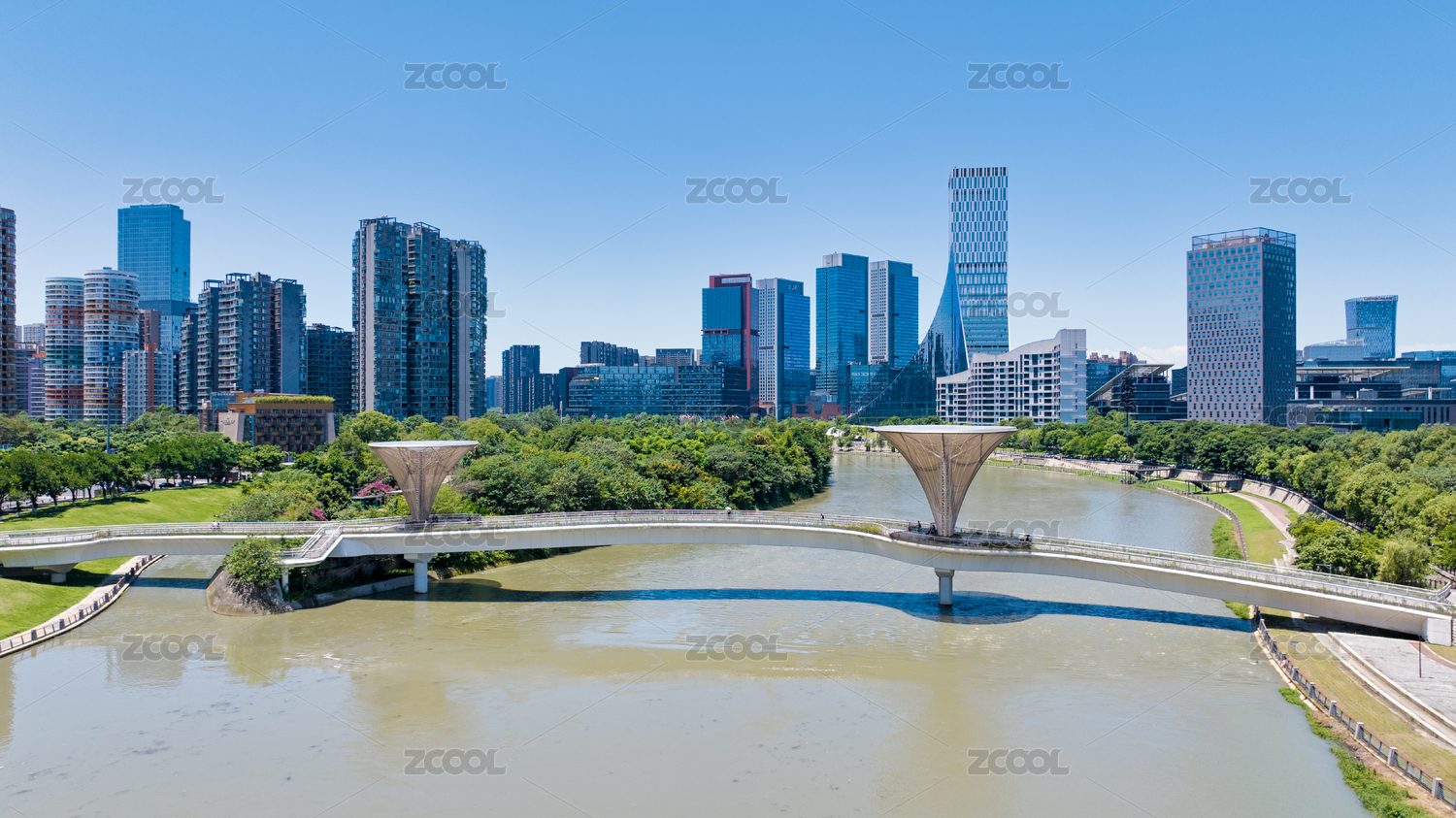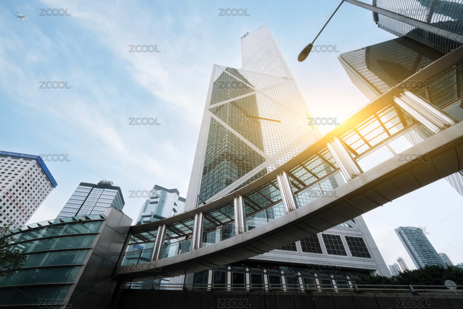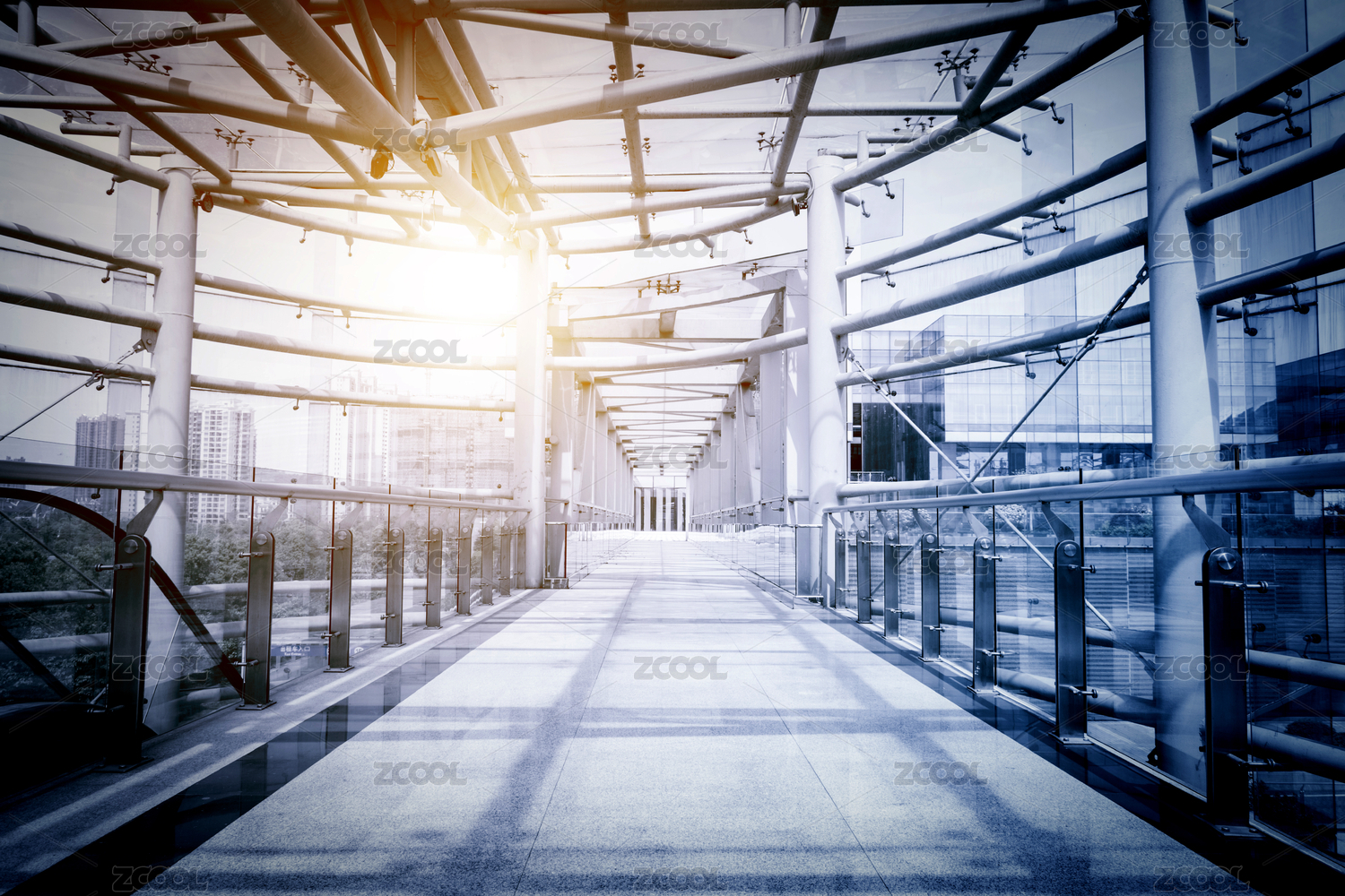 現(xiàn)代都市天際線(xiàn)與人行天橋