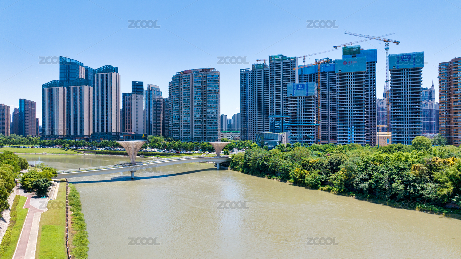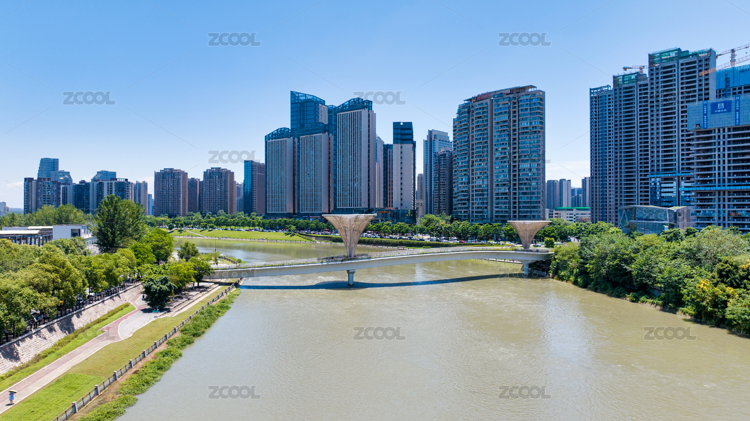 成都高新區(qū)老成仁路跨錦江人行天橋航拍