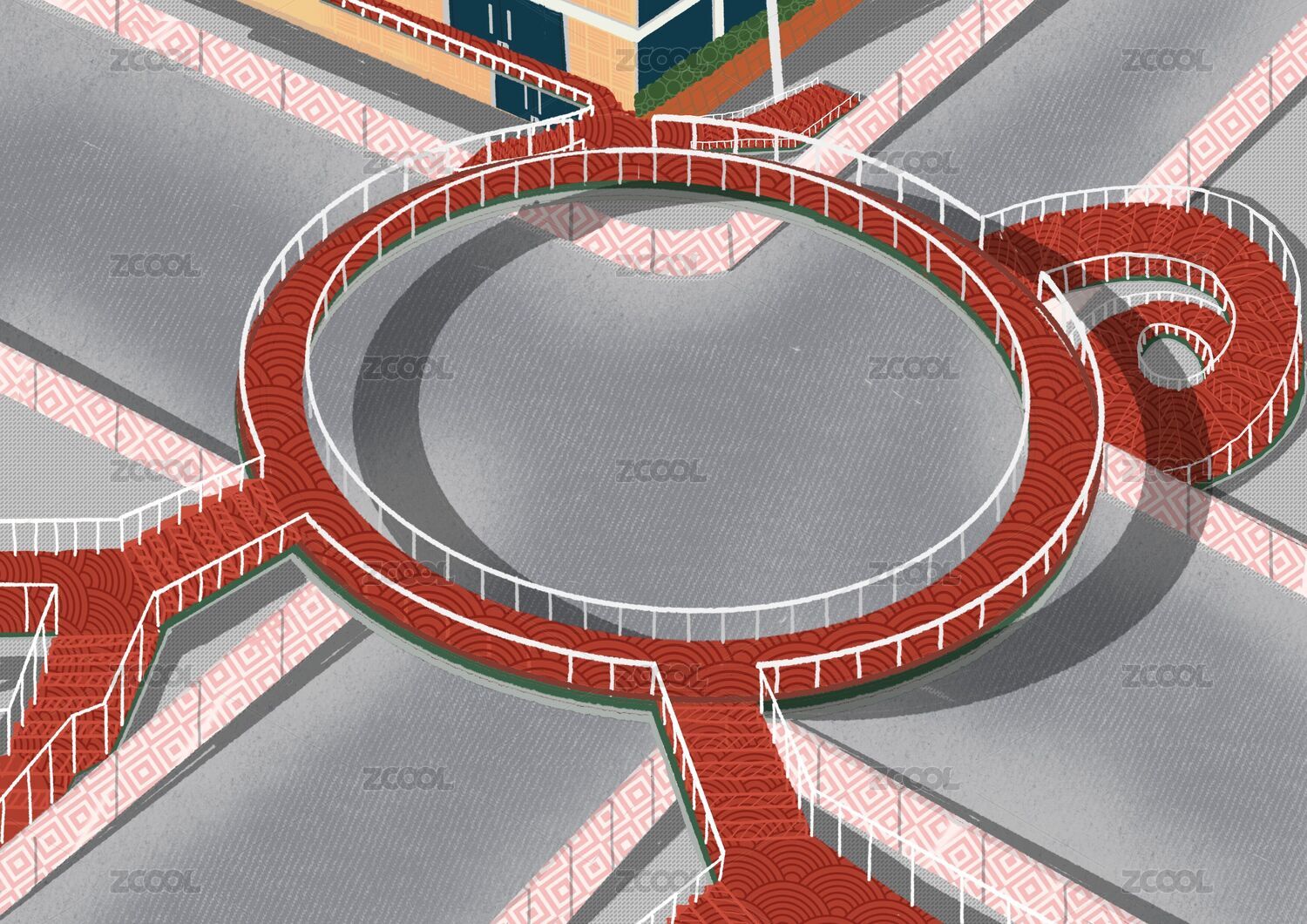成都紅色的人行天橋