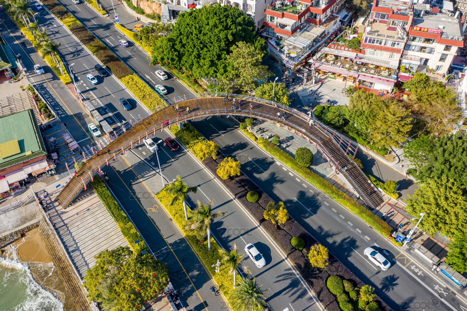 航拍福建廈門(mén)曾厝垵人行天橋 環(huán)島路漁橋