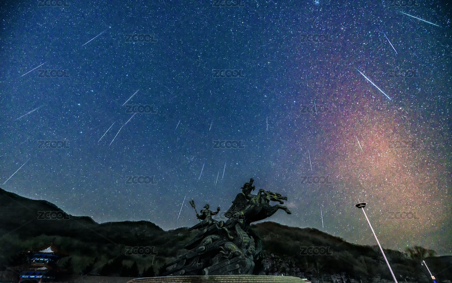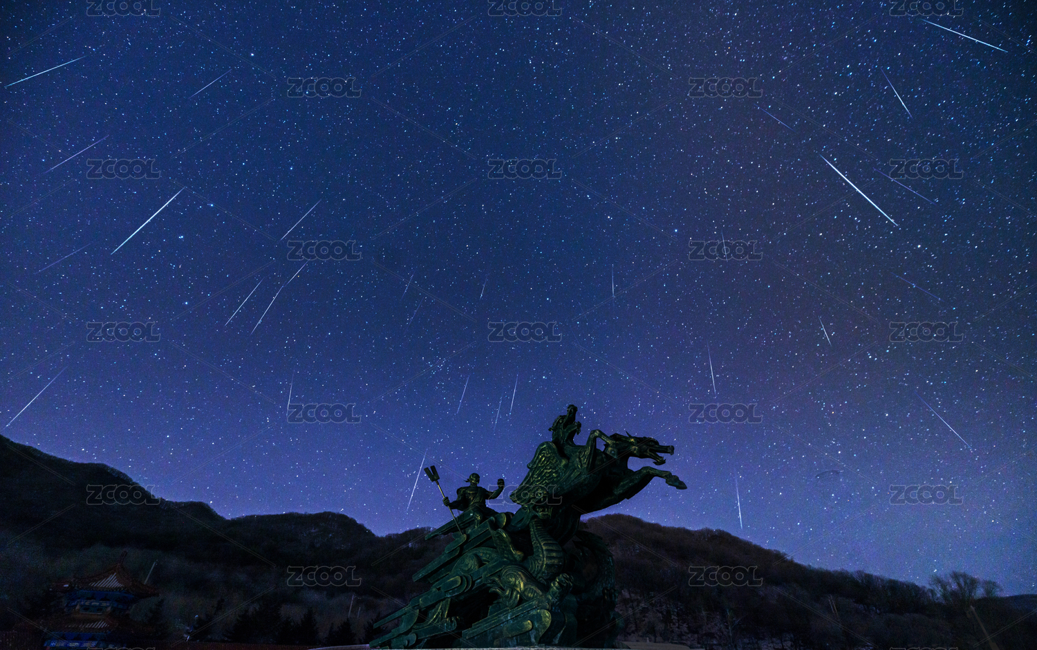 中國(guó)吉林吉林市松花湖上空的雙子座流星雨