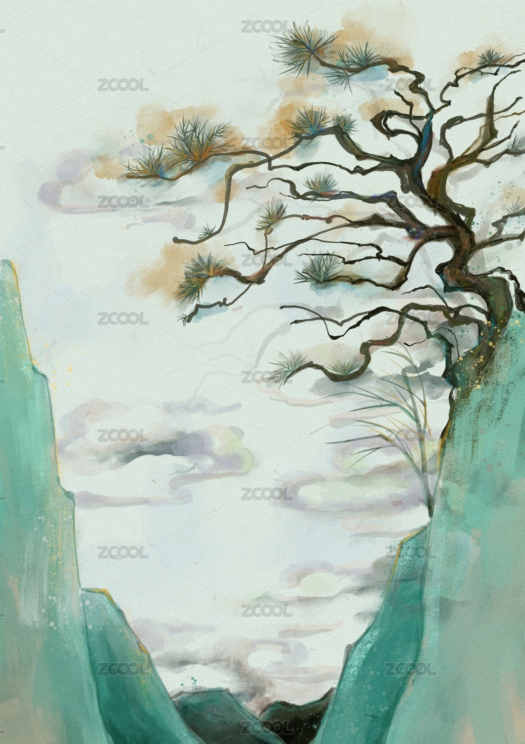 松柏松樹(shù)國(guó)潮插畫(huà)元素
