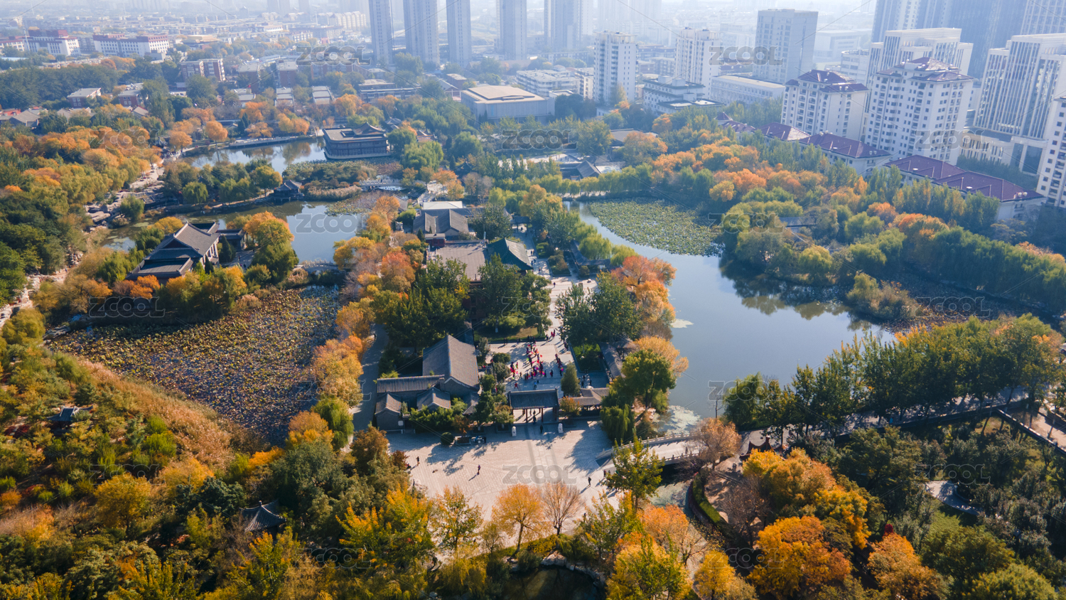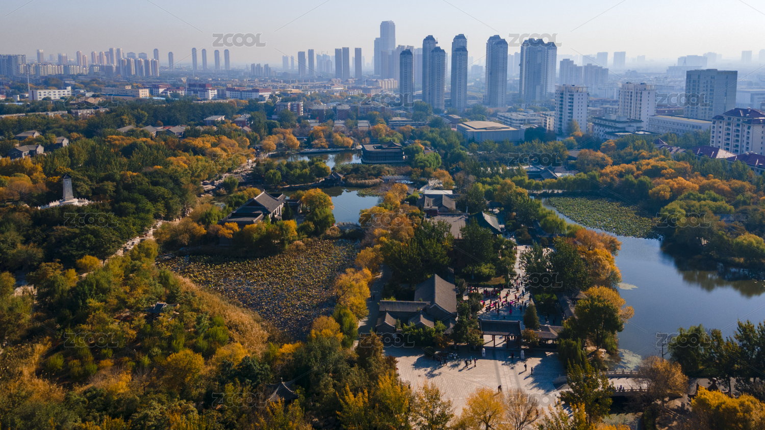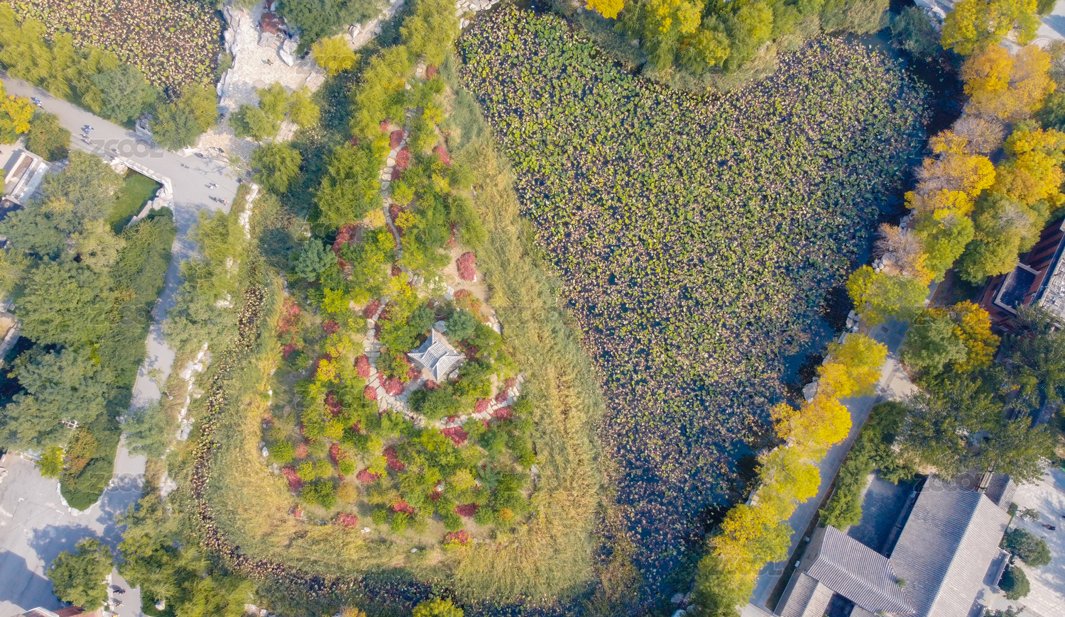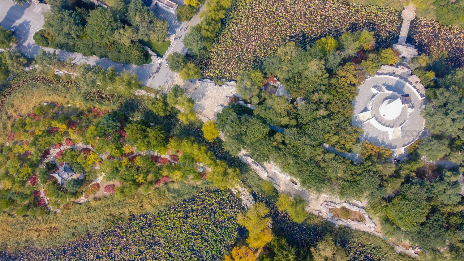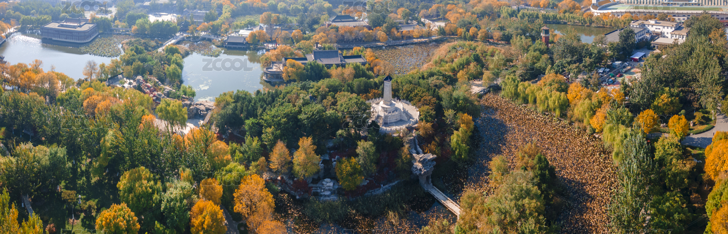中國(guó)天津北寧公園寧園秋日風(fēng)光航拍