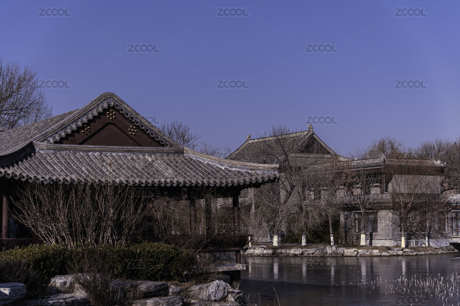 湖邊中國(guó)風(fēng)古建筑