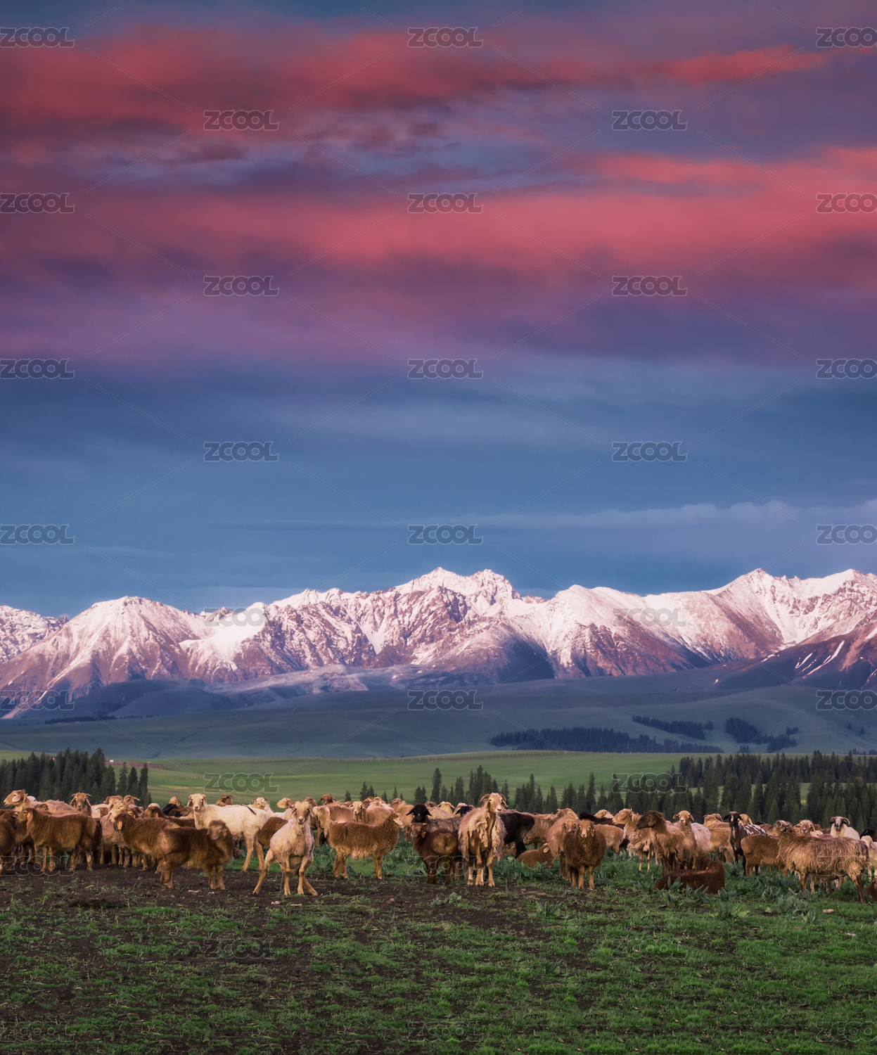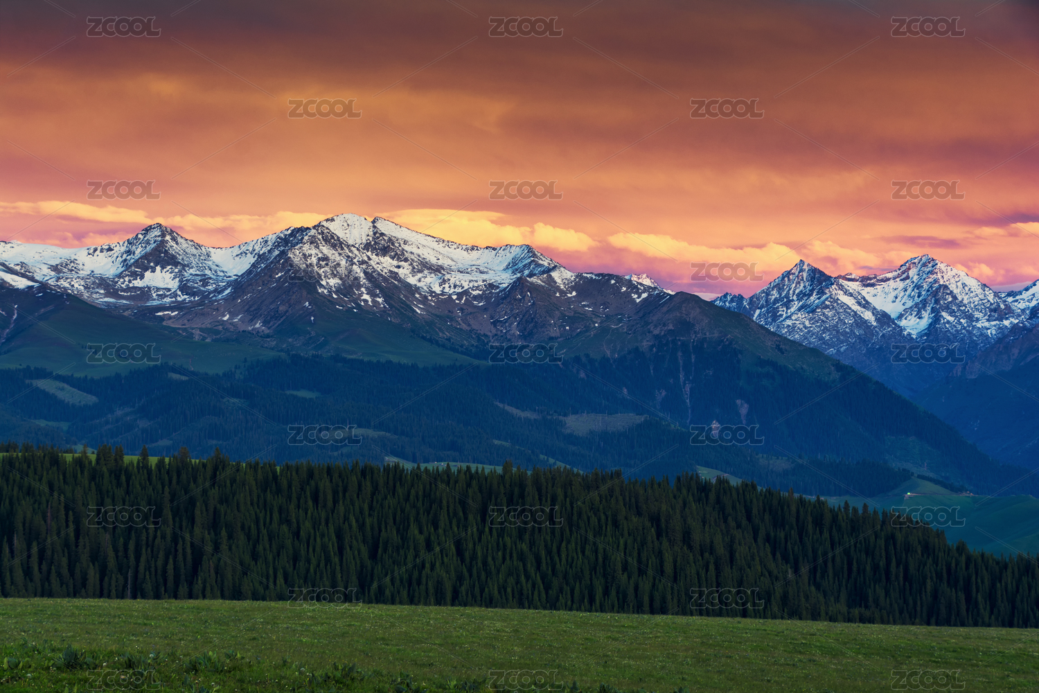 中國(guó)新疆伊犁尼勒克唐布拉百里畫廊落日風(fēng)光