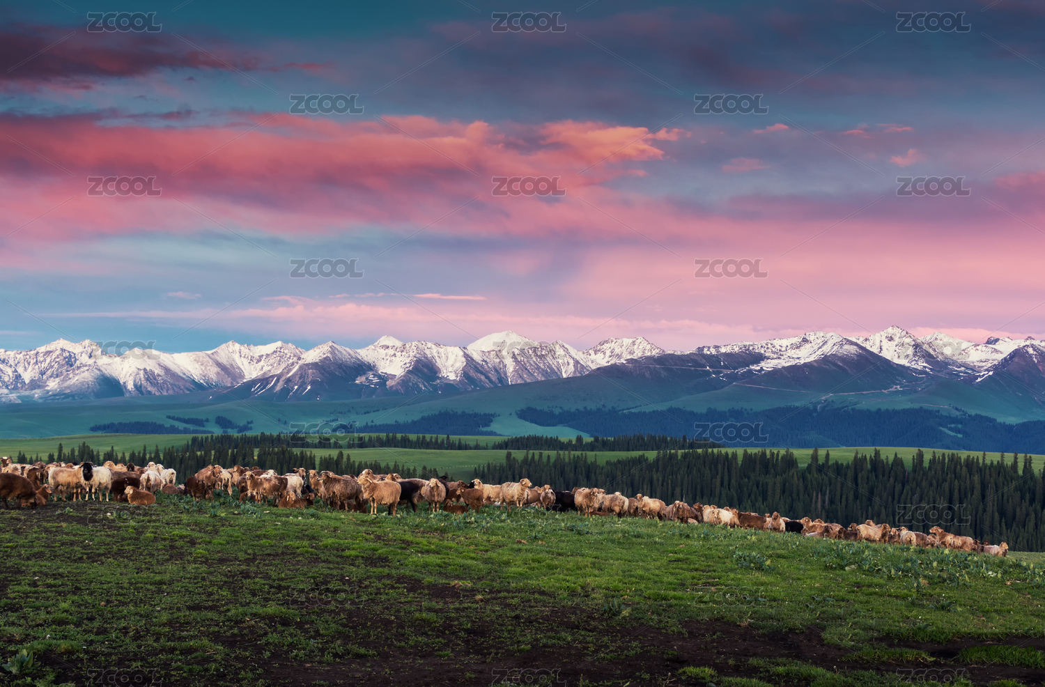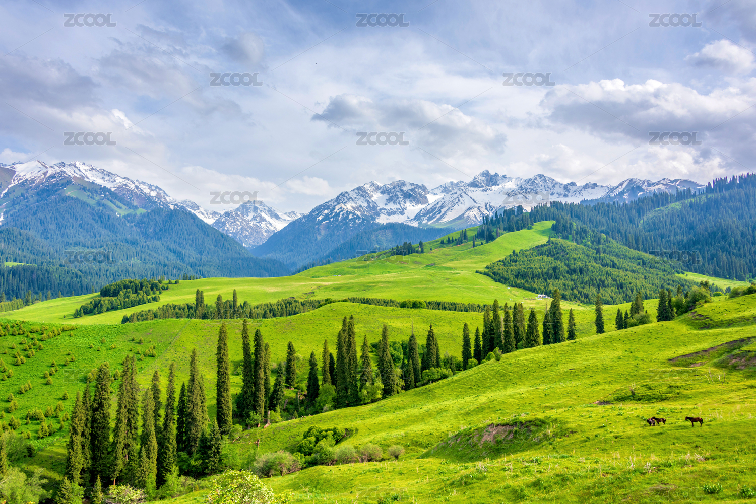 中國(guó)新疆伊犁恰西草原風(fēng)景旅游區(qū)風(fēng)光