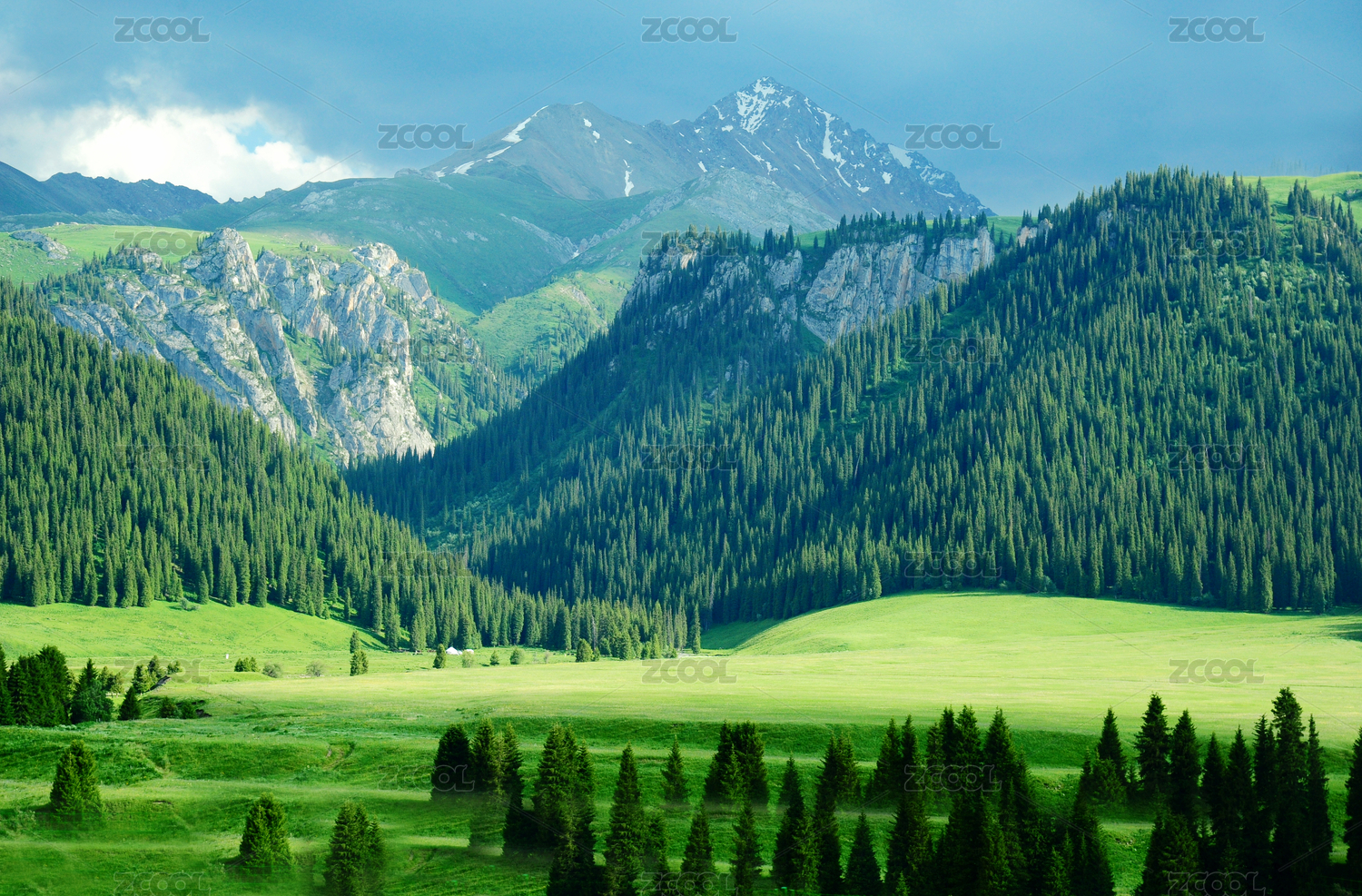 中國(guó)新疆伊犁喀拉峻草原加撒干牧場(chǎng)林海峽谷