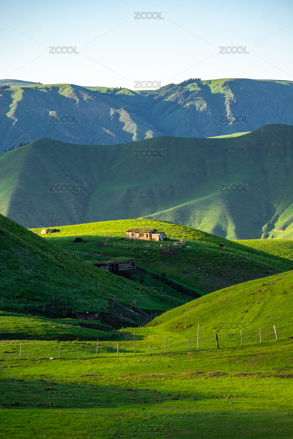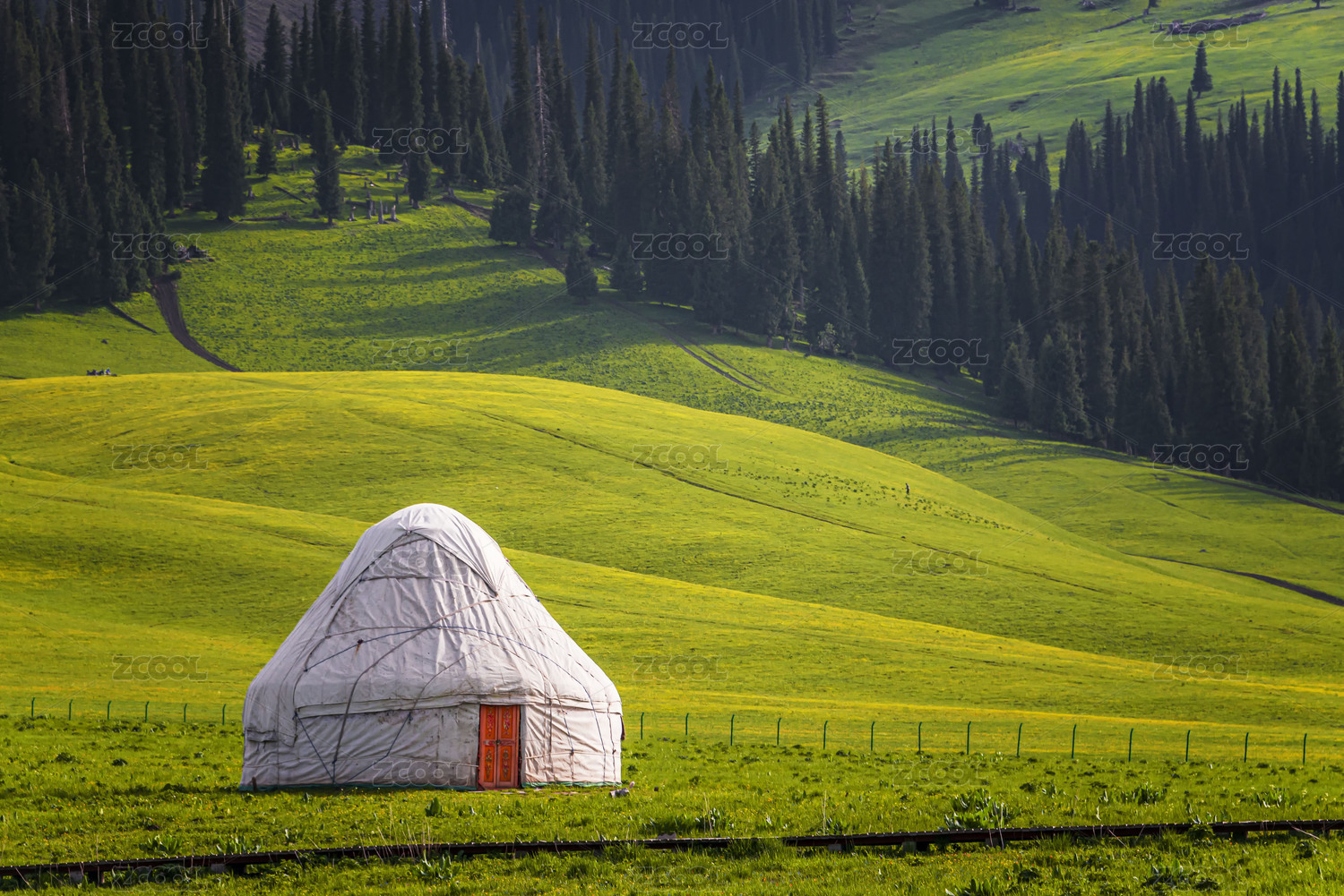 中國(guó)新疆伊犁喀拉峻草原瓊庫什臺(tái)木屋