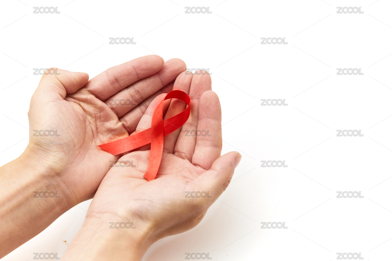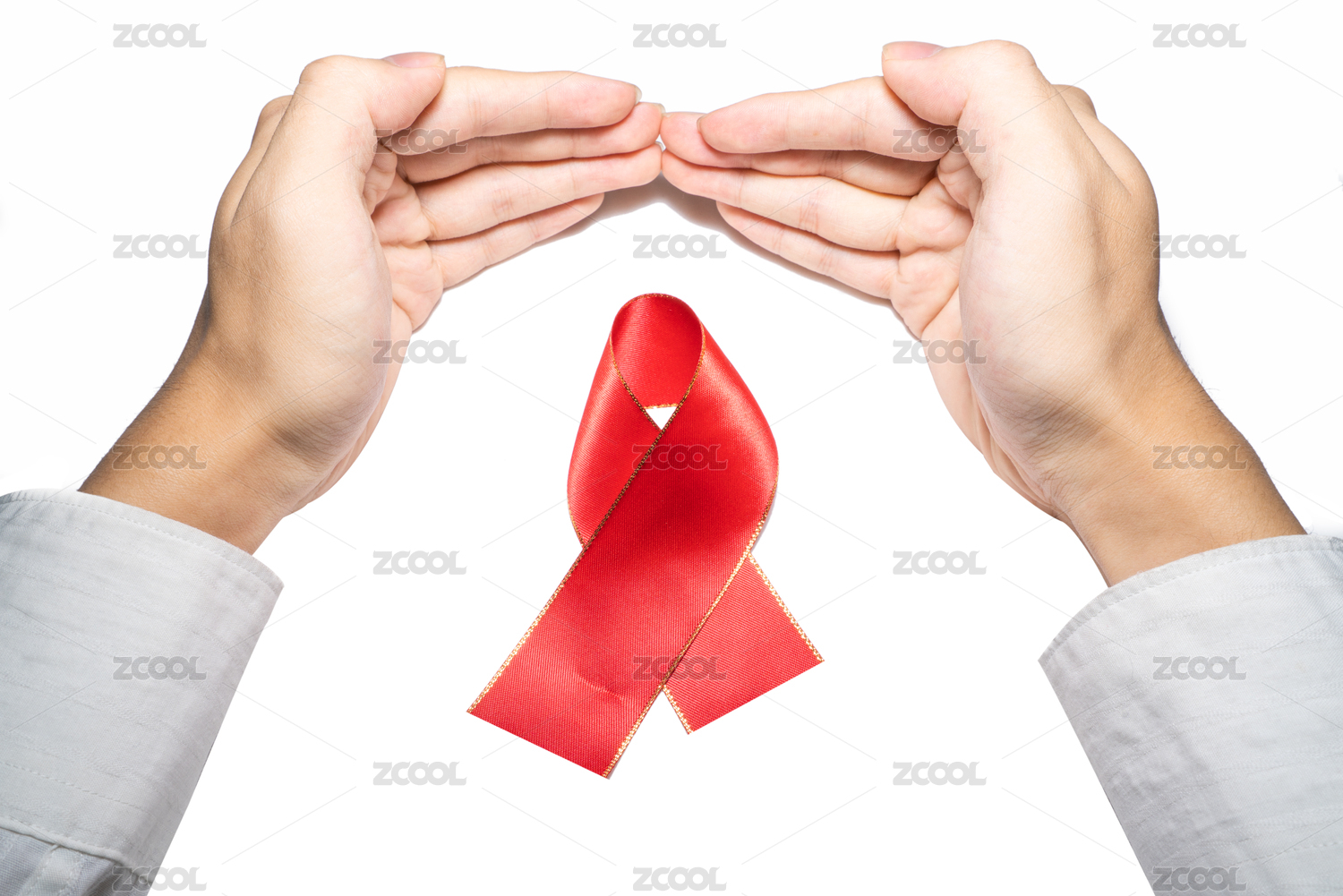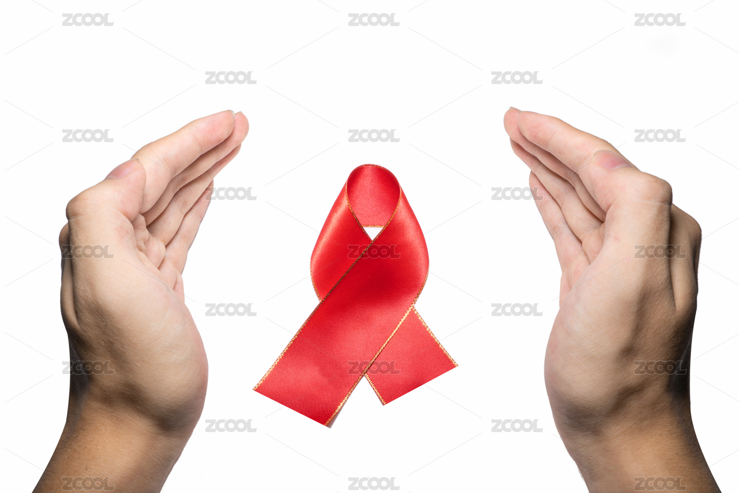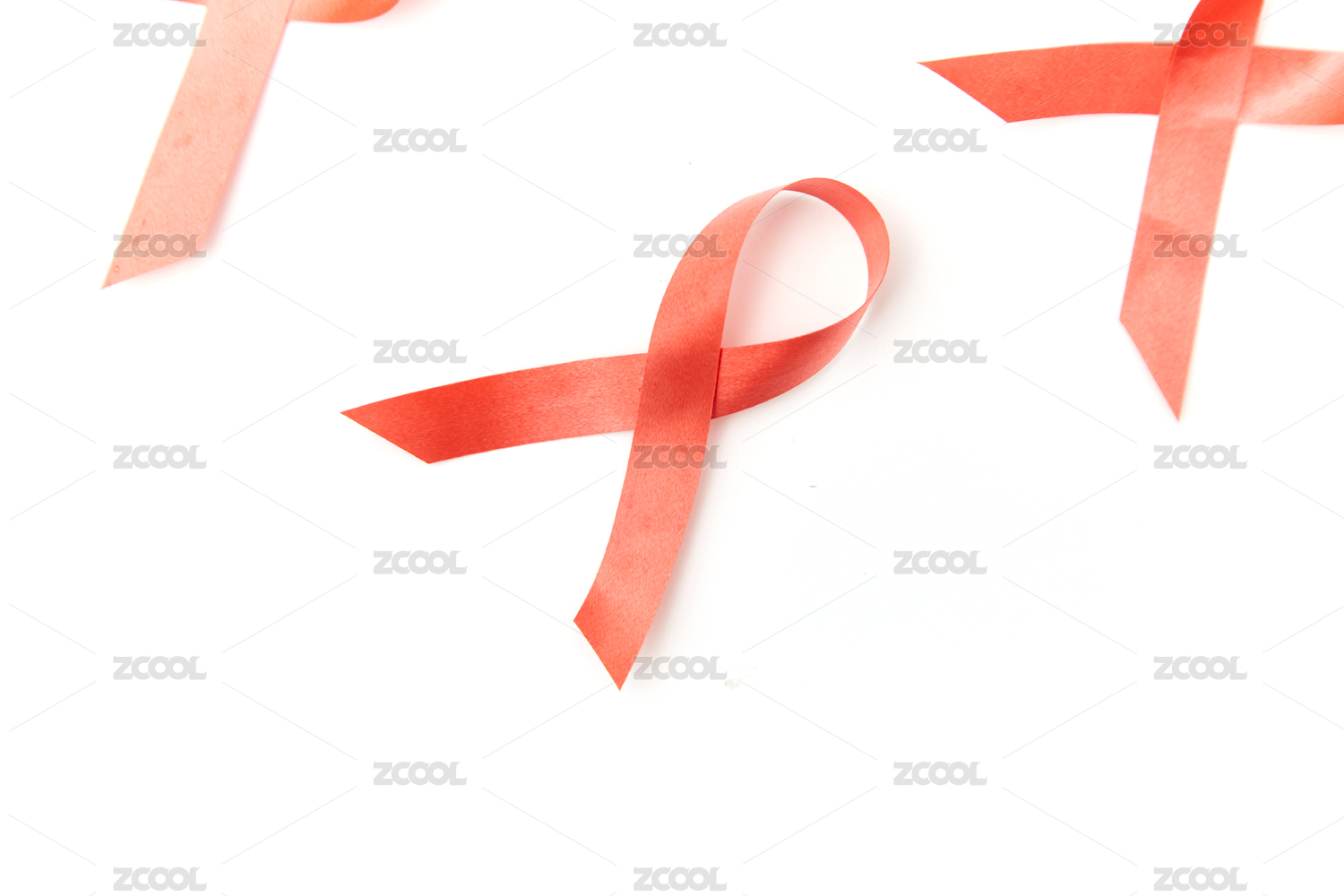 白色背景下艾滋病AIDS紅絲帶保護預(yù)防呵護理解概念