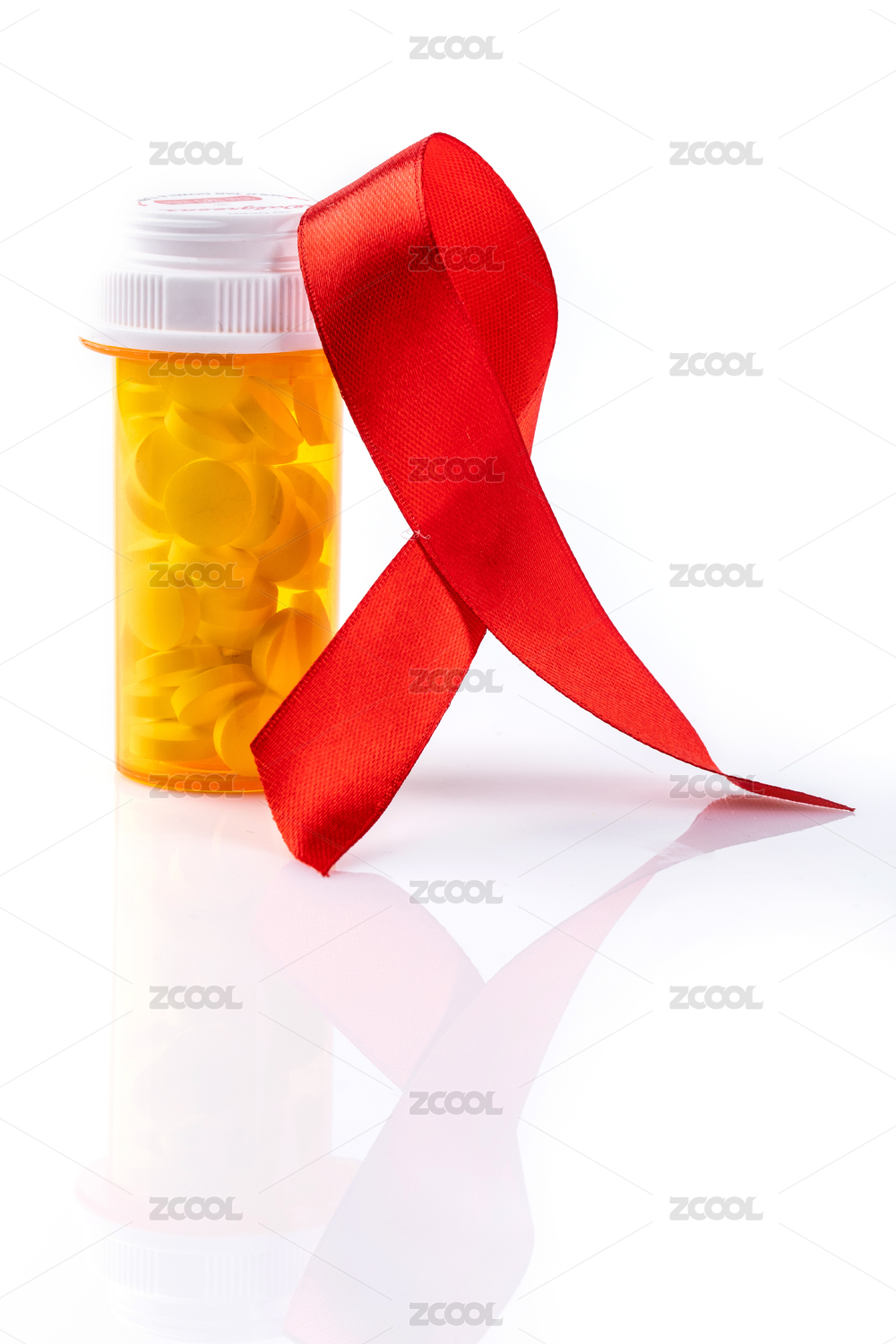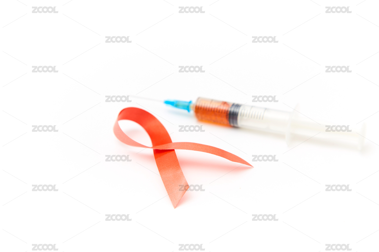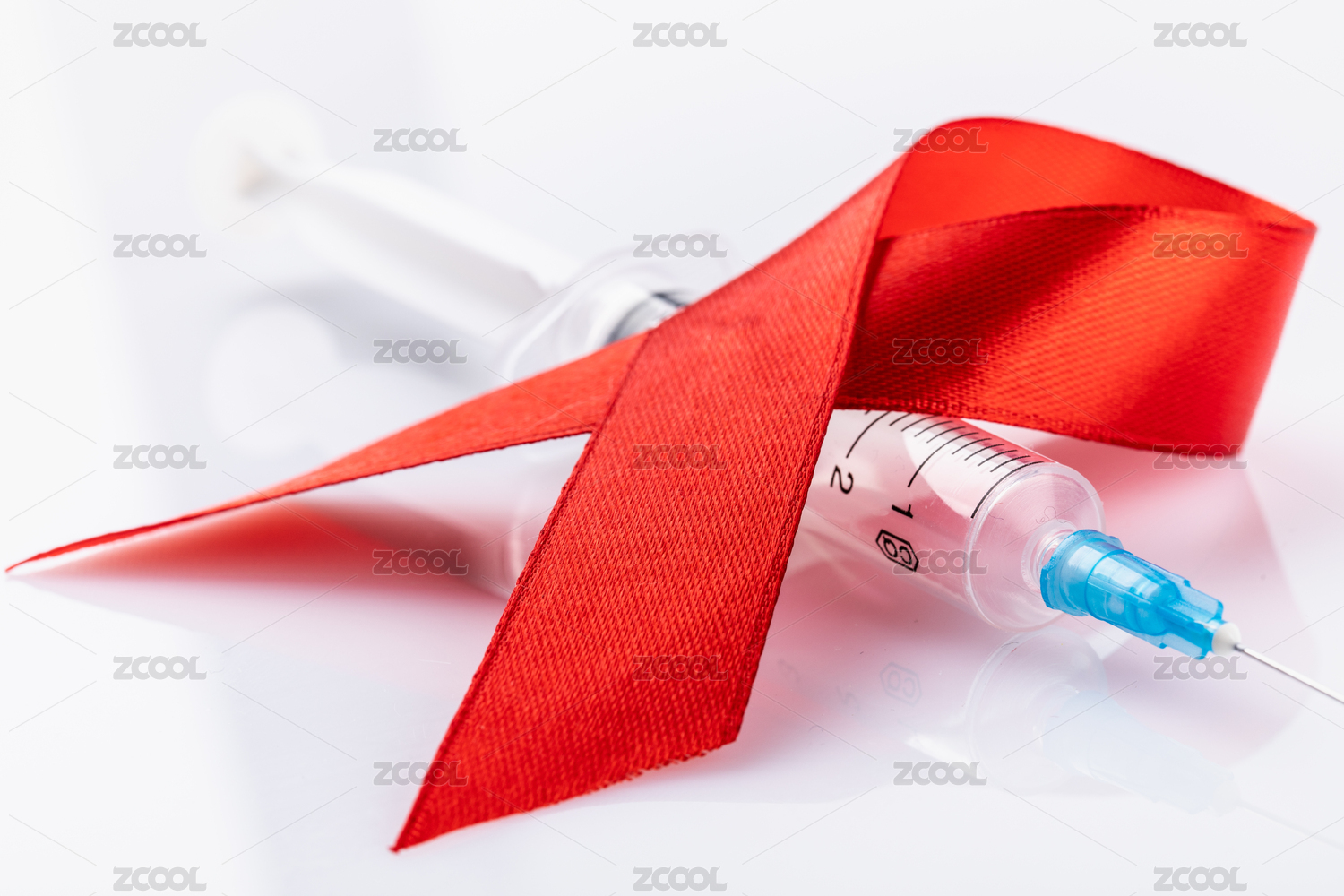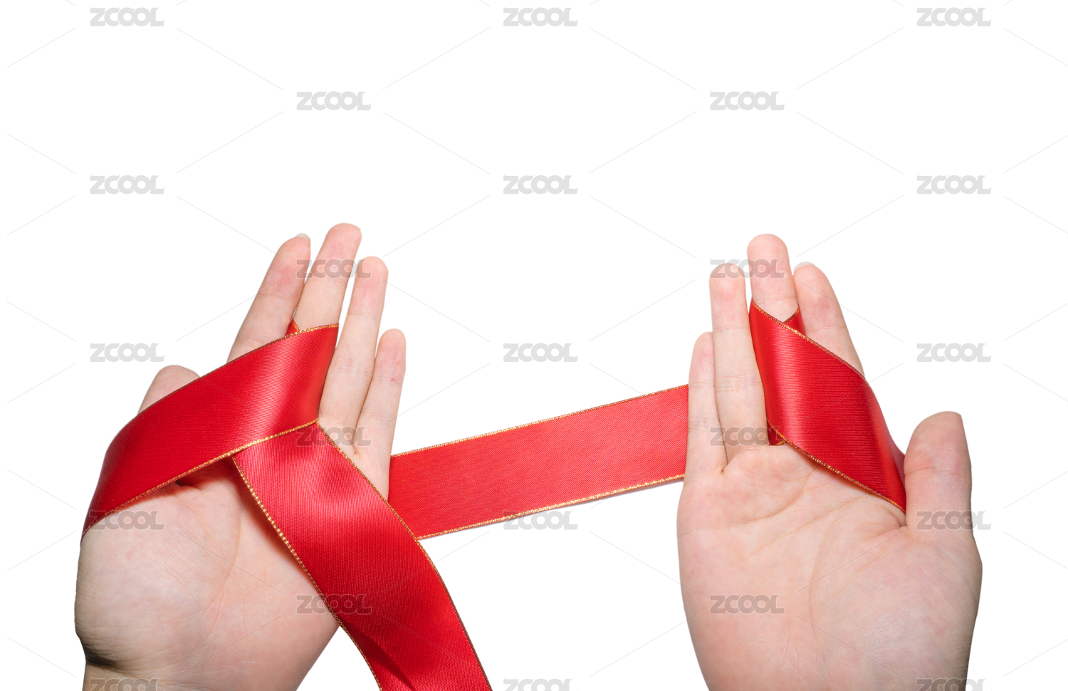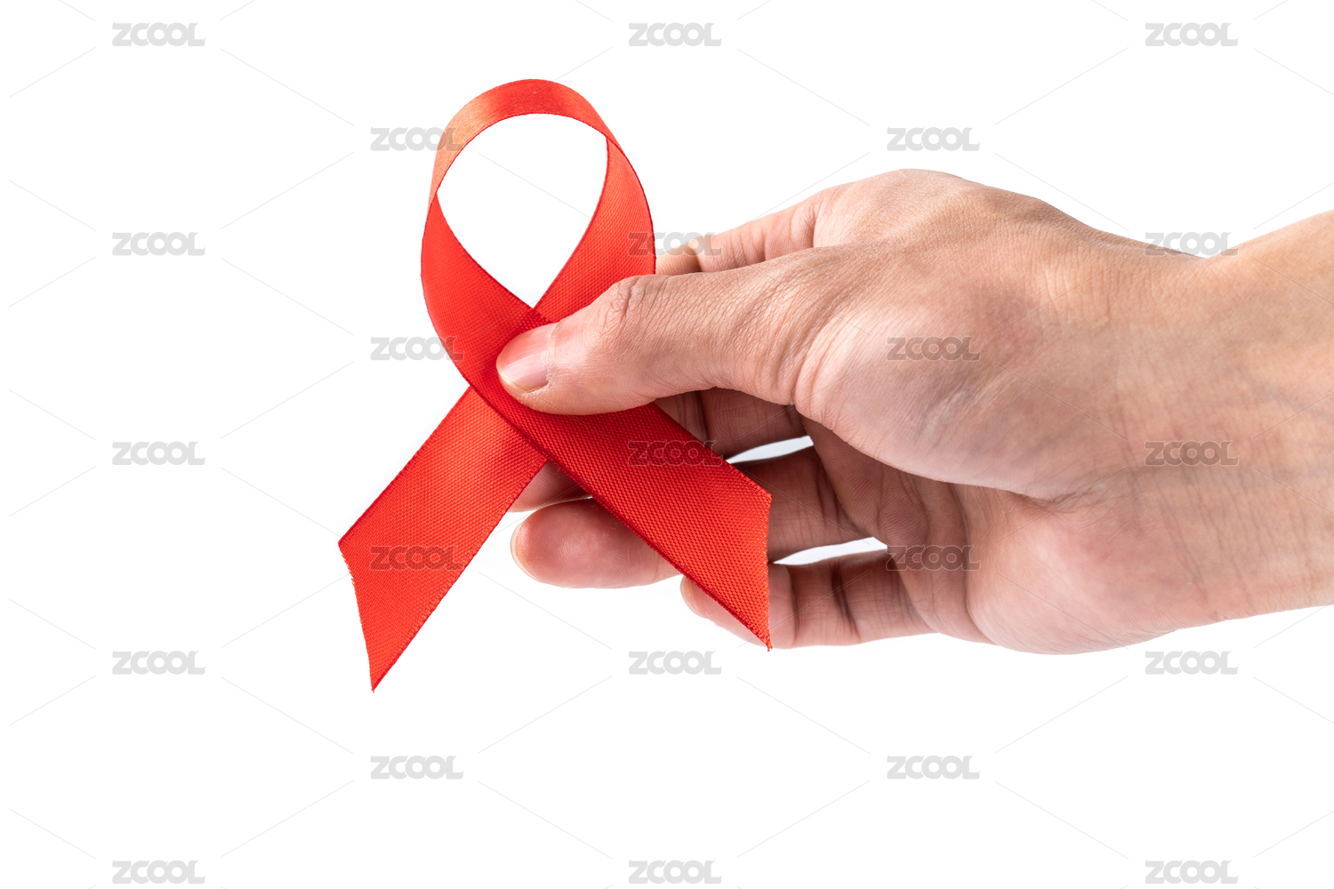 白色背景下艾滋病AIDS紅絲帶保護預(yù)防呵護理解概念